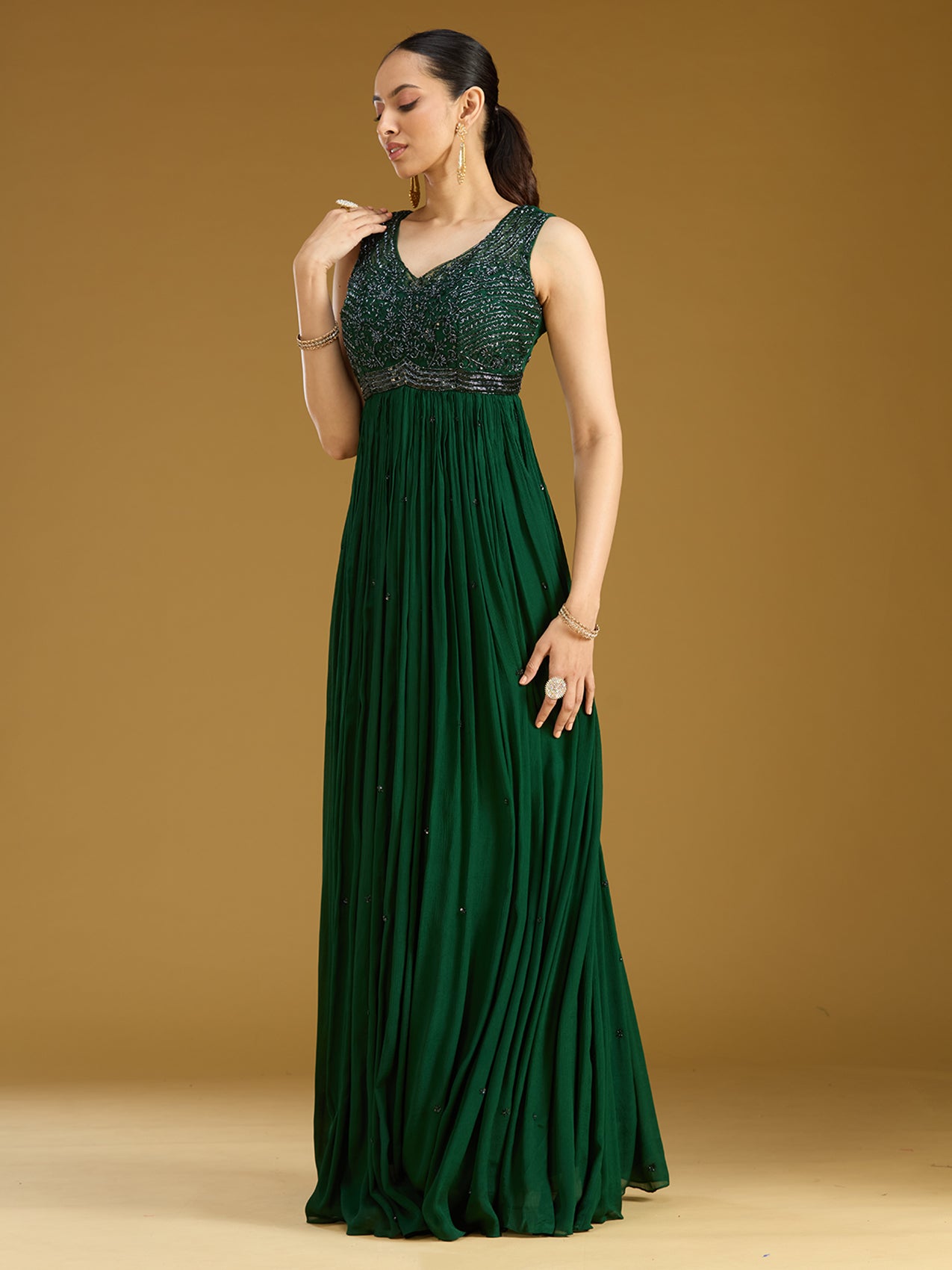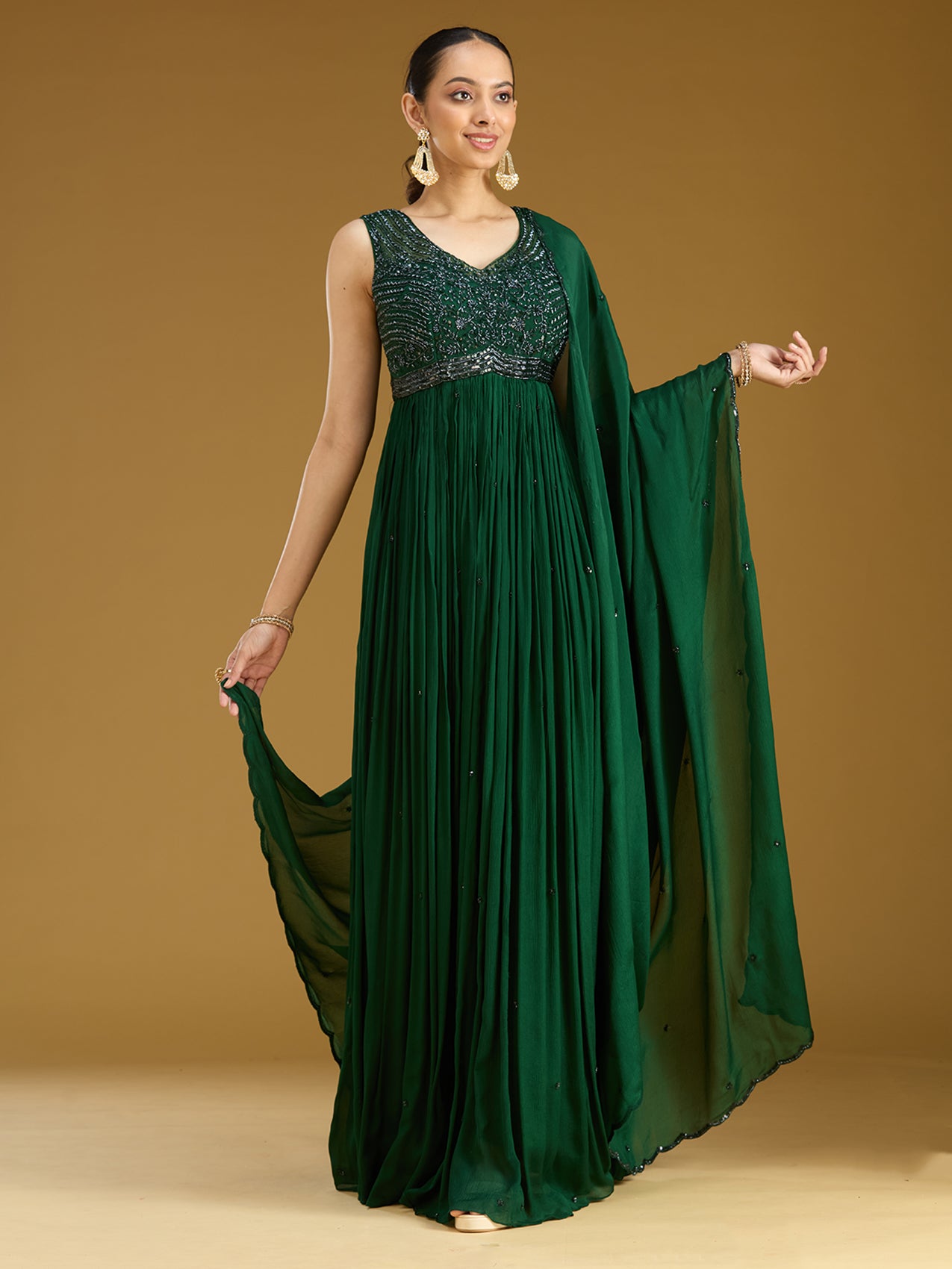 Bottle Green Salwar Suit in Satin fabric. The Salwar Suit is embellished with Sequins embroidery. Accompanied with a bottom and dupatta. Comes with the Koskii promise of premium quality.