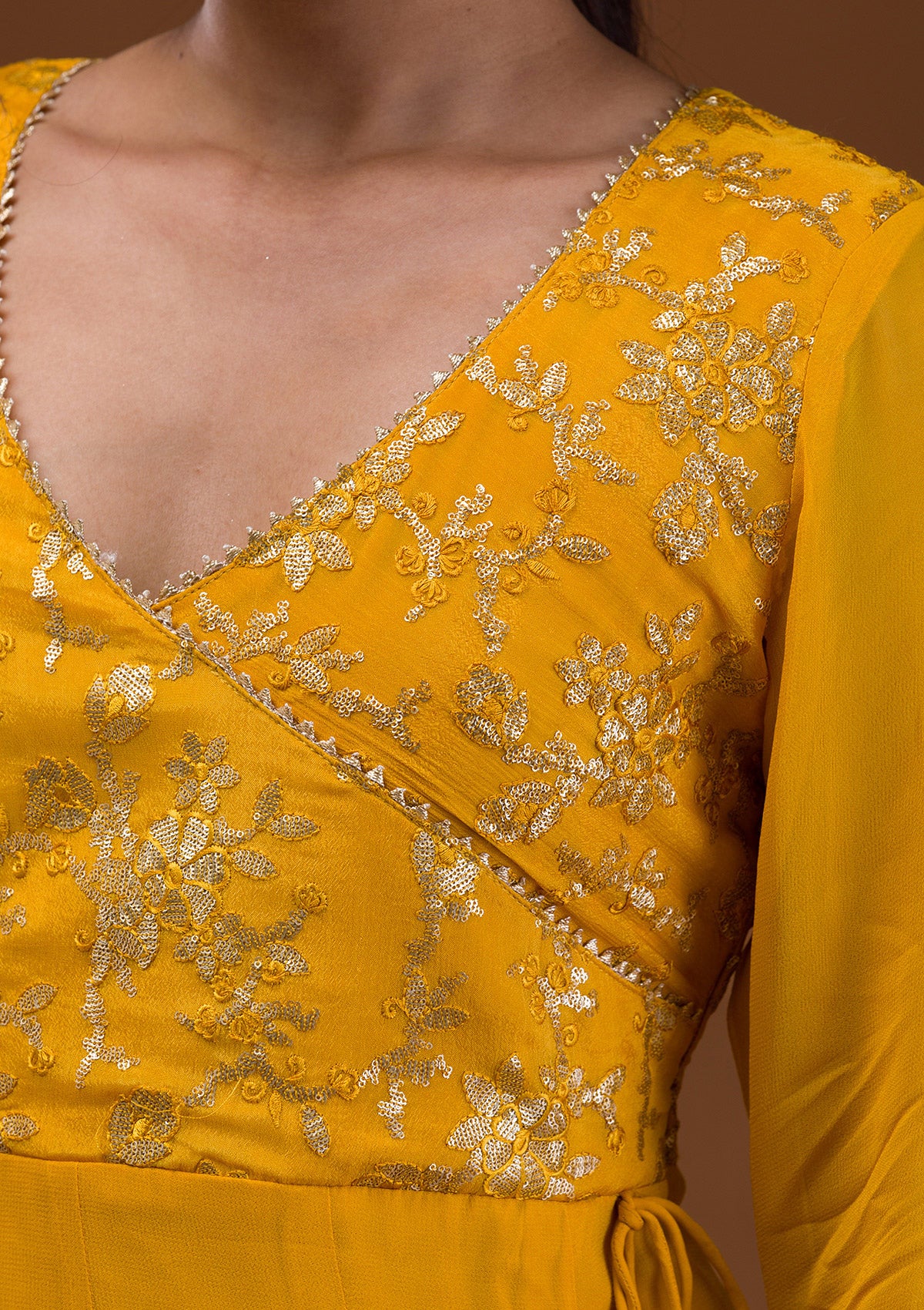 Mustard Salwar Suit in Georgette fabric. The Salwar Suit is embellished with Sequins embroidery. Accompanied with a bottom and dupatta. Comes with the Koskii promise of premium quality.