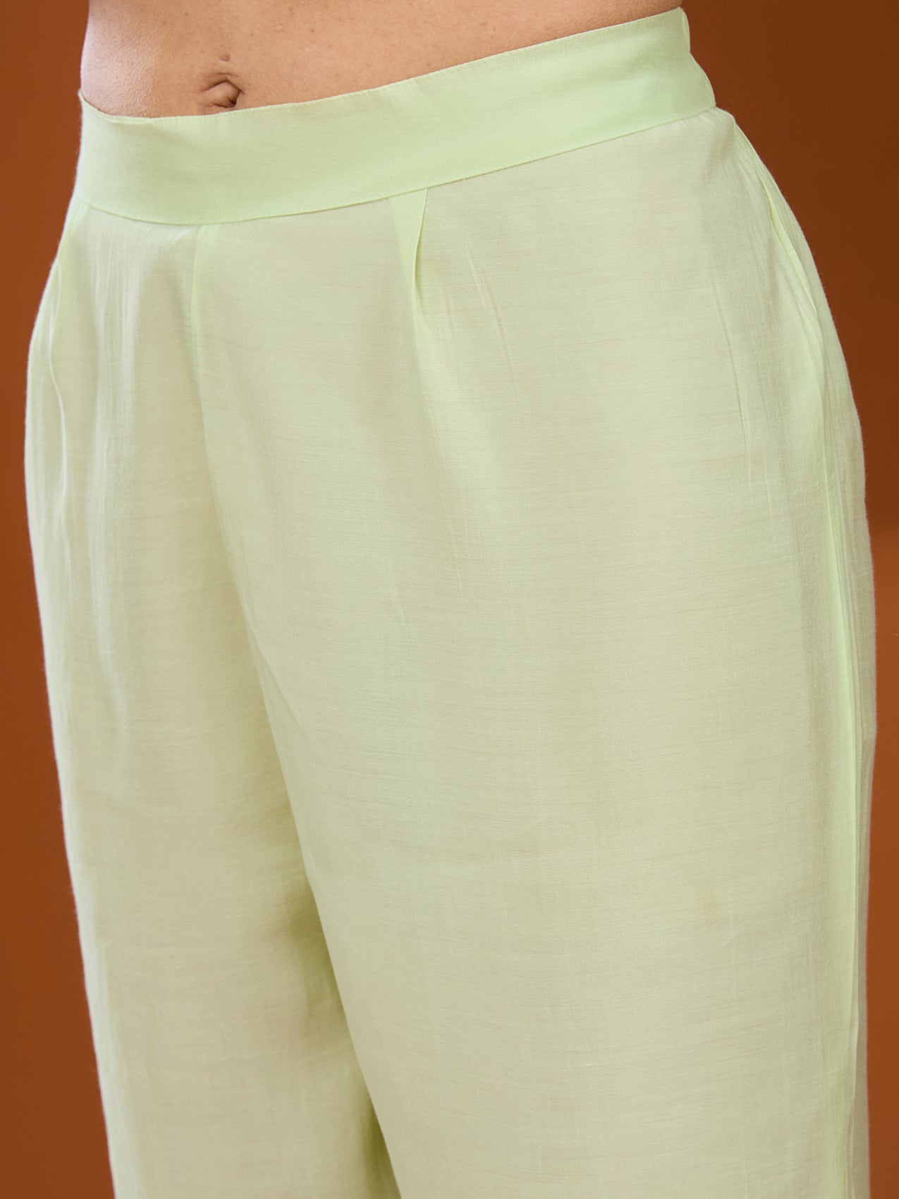 Pista Green Salwar Suit in Chanderi fabric. The Salwar Suit is embellished with Threadwork embroidery. Accompanied with a bottom and dupatta. Comes with the Koskii promise of premium quality.
