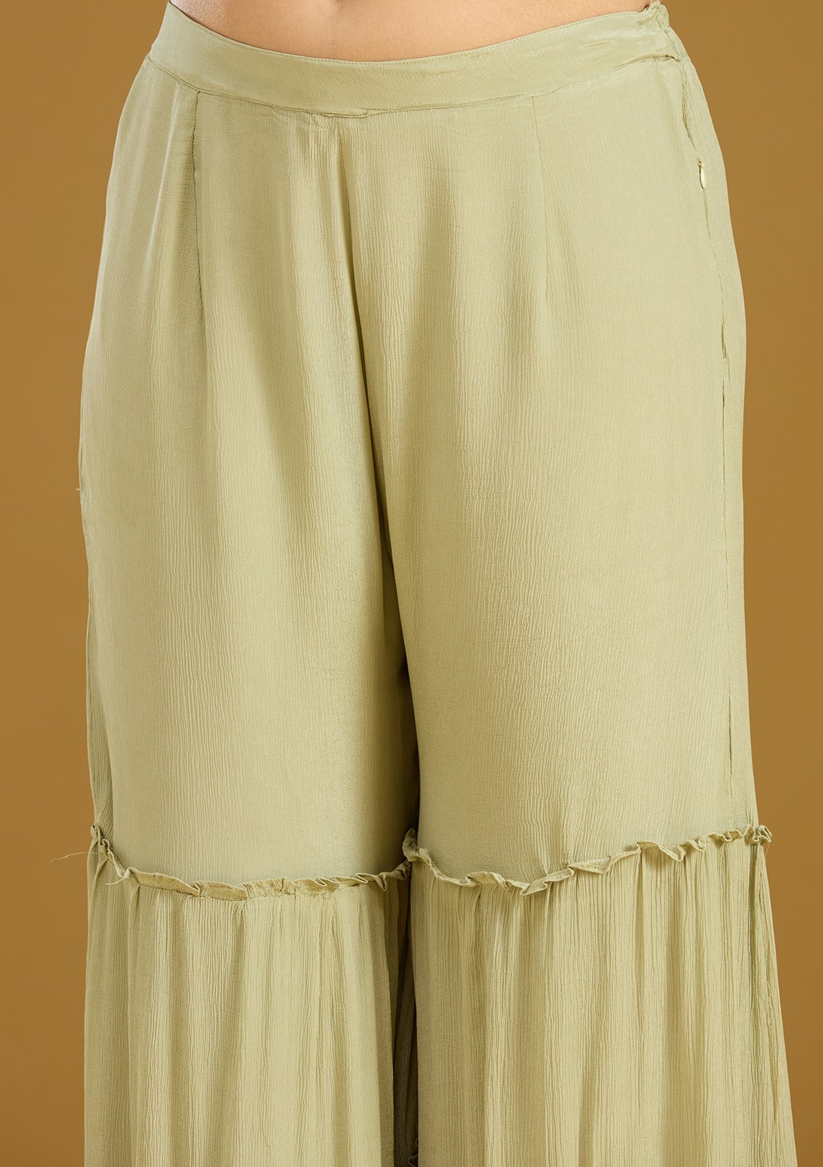 Pista Green Salwar Suit in Crepe fabric. The Salwar Suit is embellished with Threadwork embroidery. Accompanied with a bottom and dupatta. Comes with the Koskii promise of premium quality.