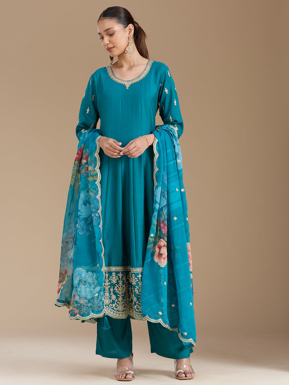 | Mehandi Green Threadwork Soft Raw Silk Readymade Salwar Suit | ₹ 4,543 | |