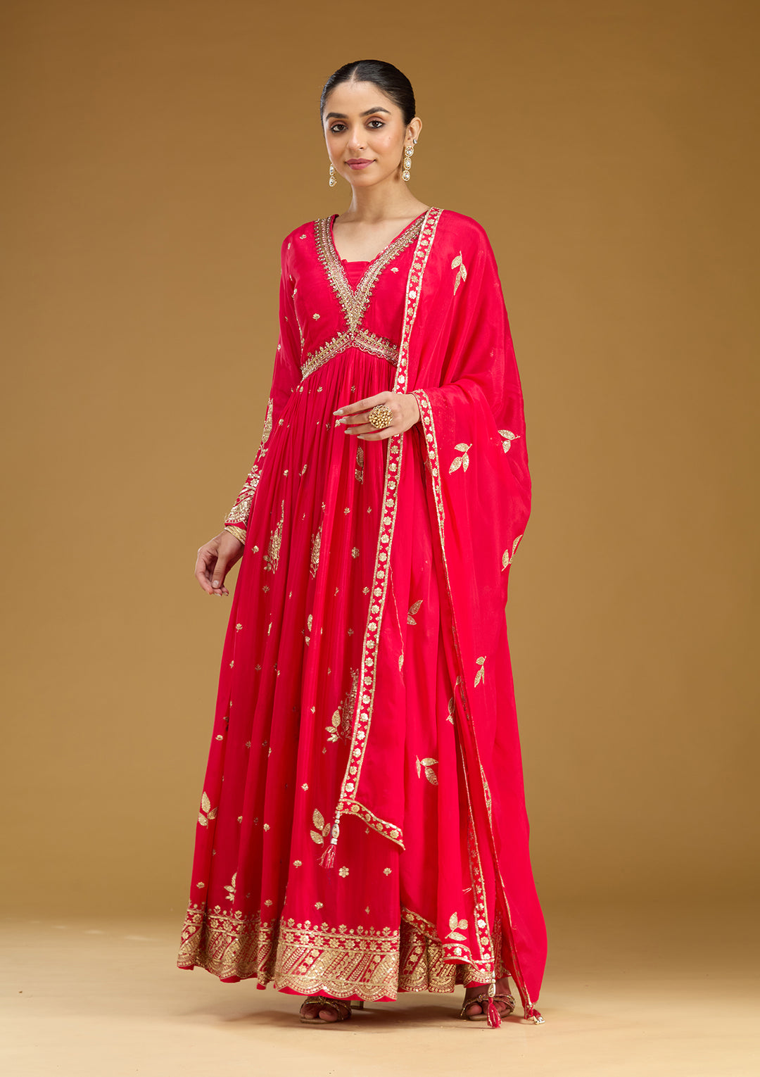 | Pink Threadwork Chanderi Readymade Salwar Suit | ₹ 2,863 | |