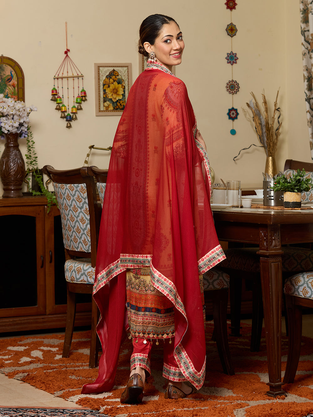 | Rust Zariwork (Gold) Soft Raw Silk Readymade Salwar Suit | ₹ 2,863 | |