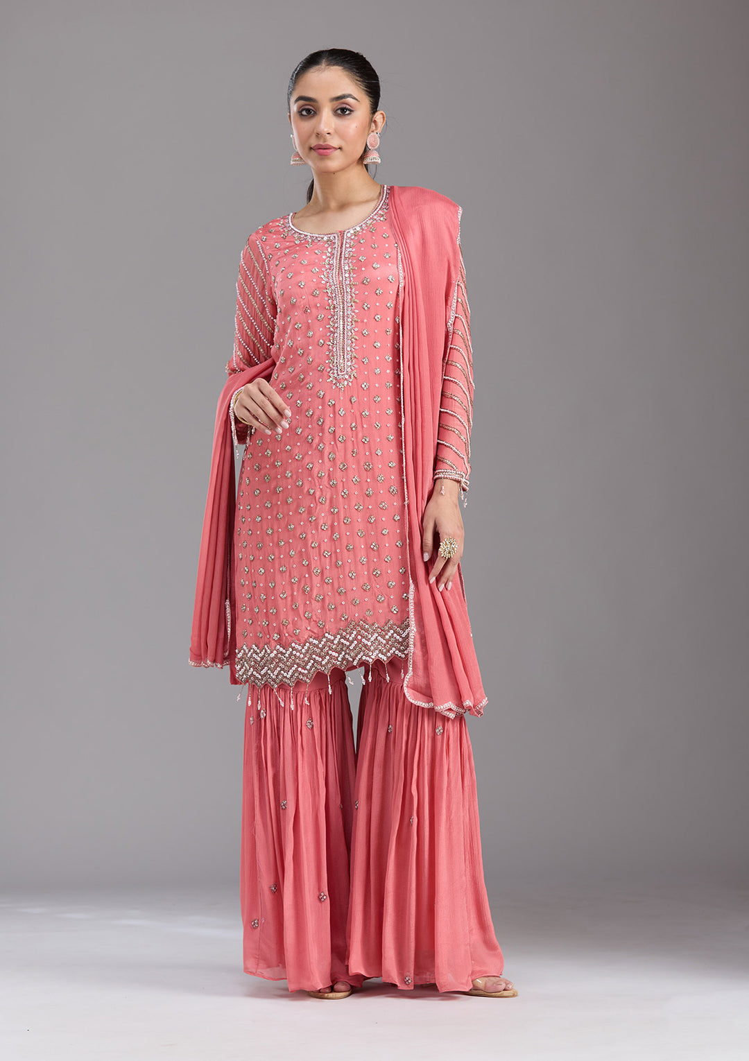 | Orange Zariwork (Gold) Chinon Readymade Sharara Suit | ₹ 9,990 | |