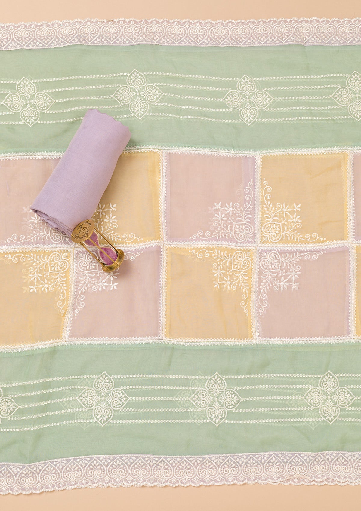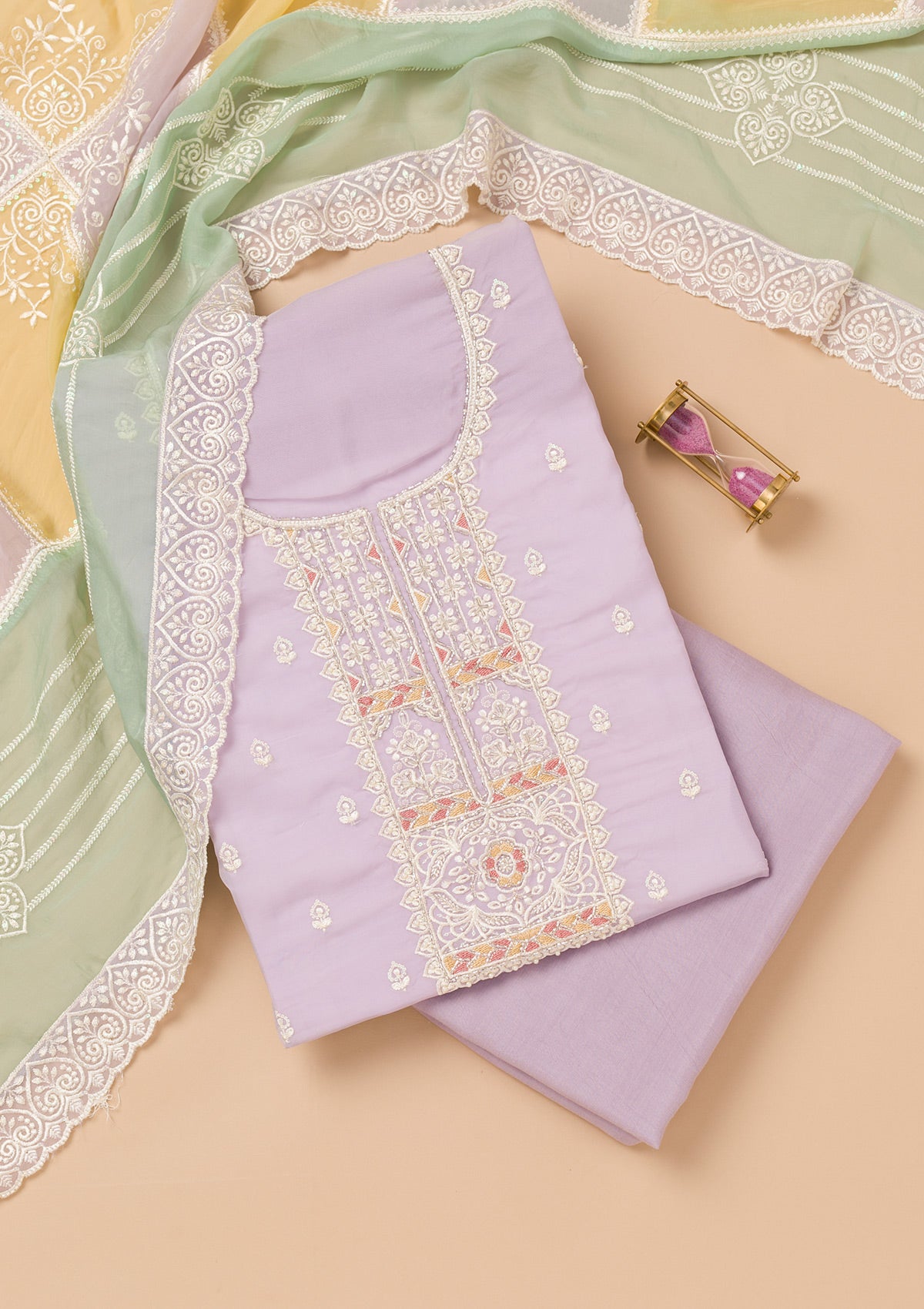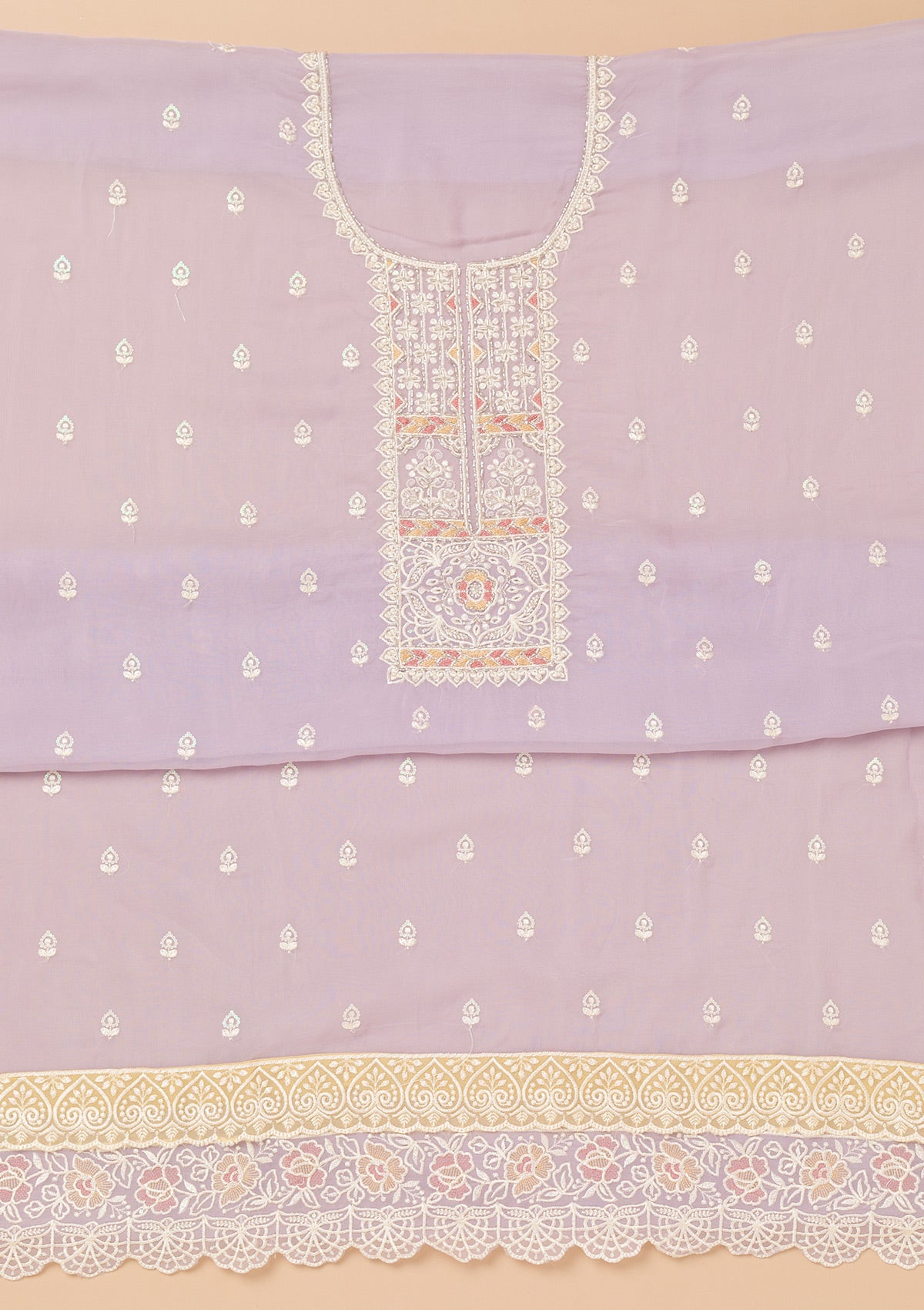 Lavender Threadwork Organza Unstitched Salwar Suit