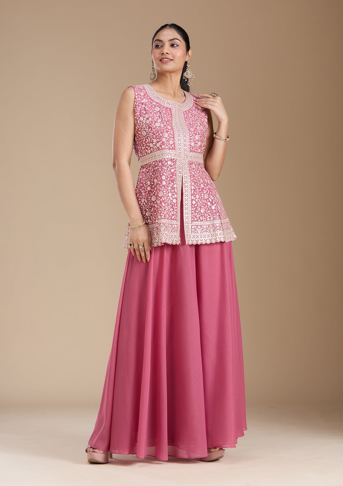 Pink Zariwork (Gold) Georgette Readymade Salwar Suit