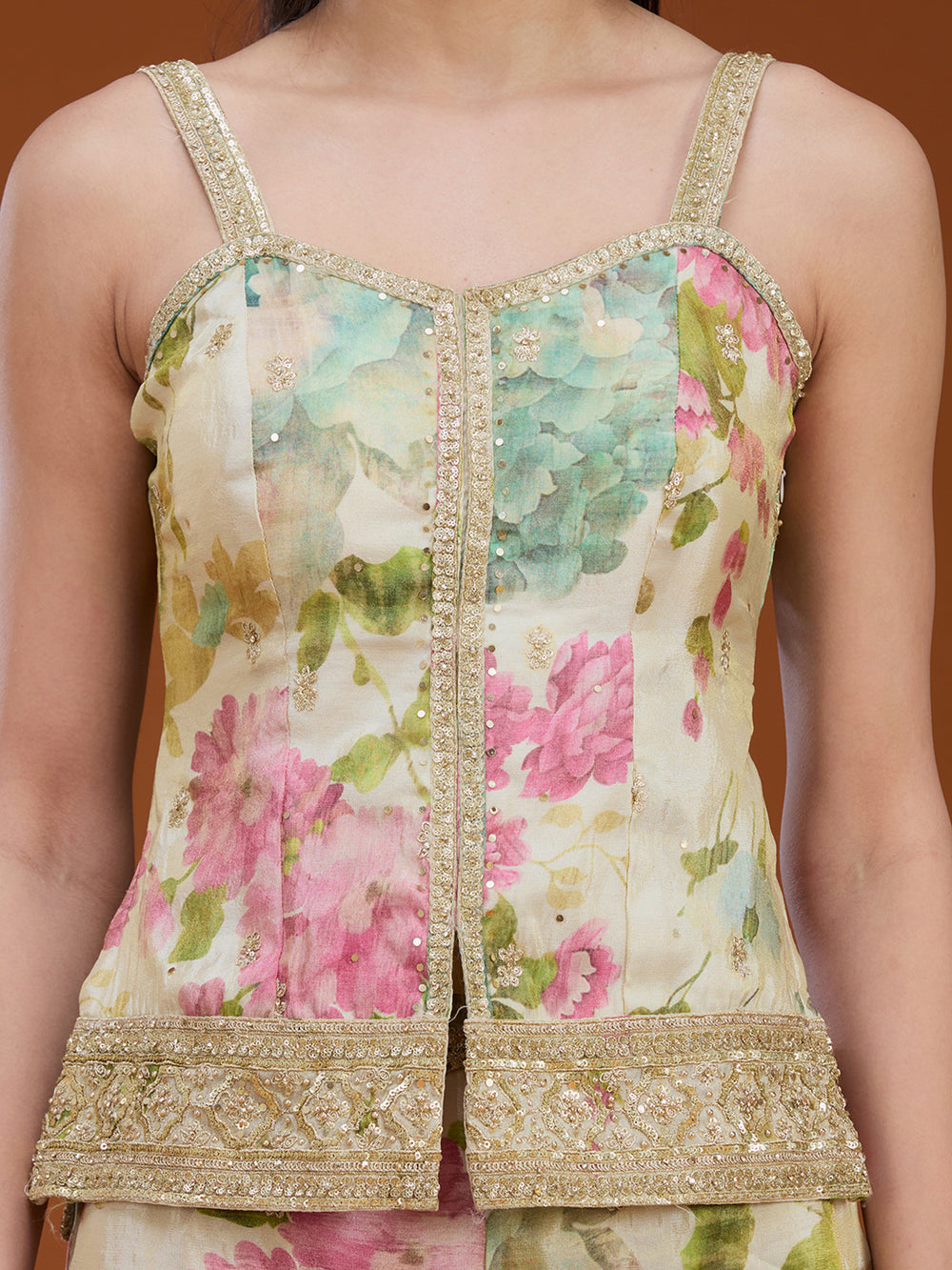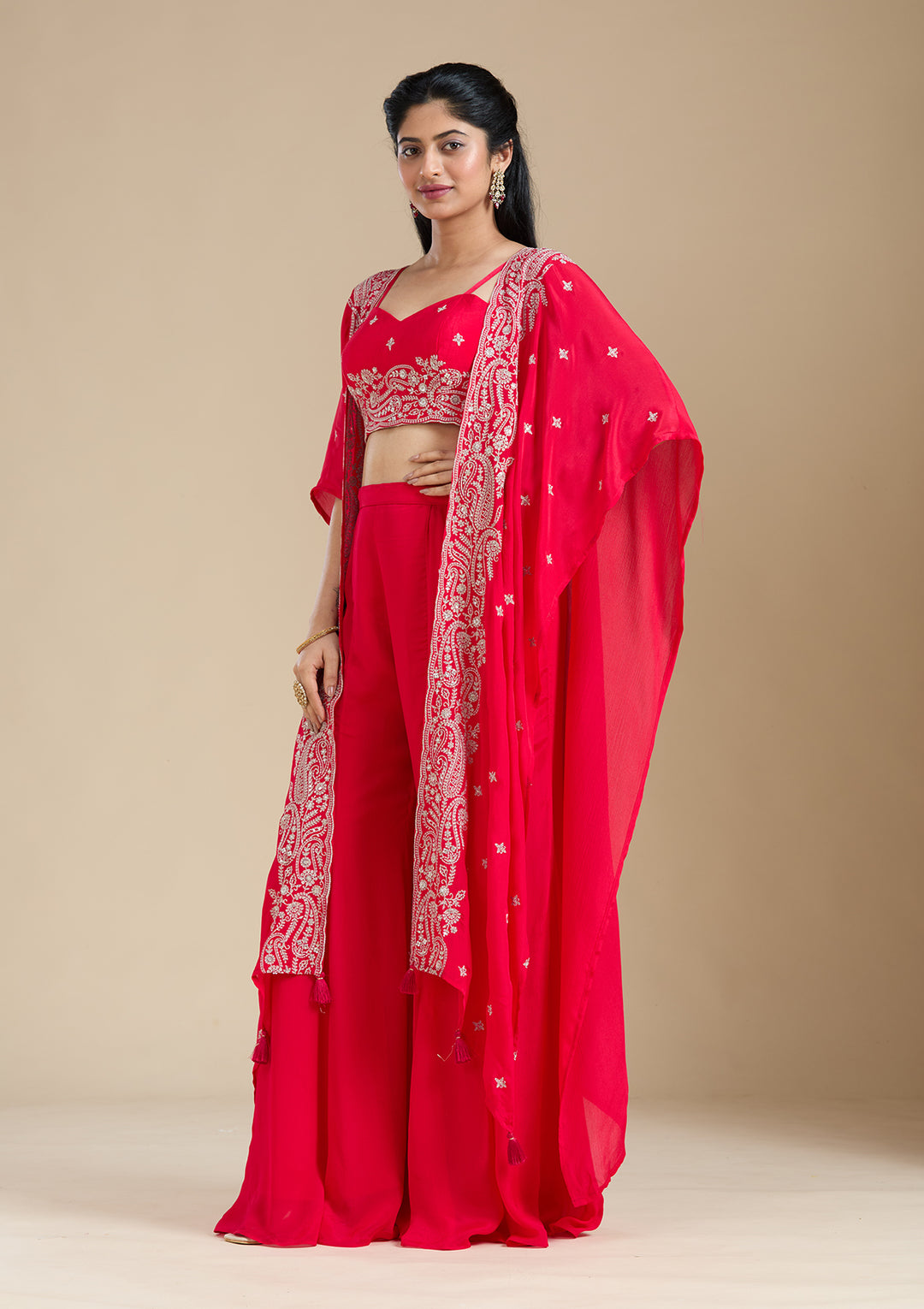 - Jazz up your birthday party look with a rani pink palazzo set, crop top, and short jacket.