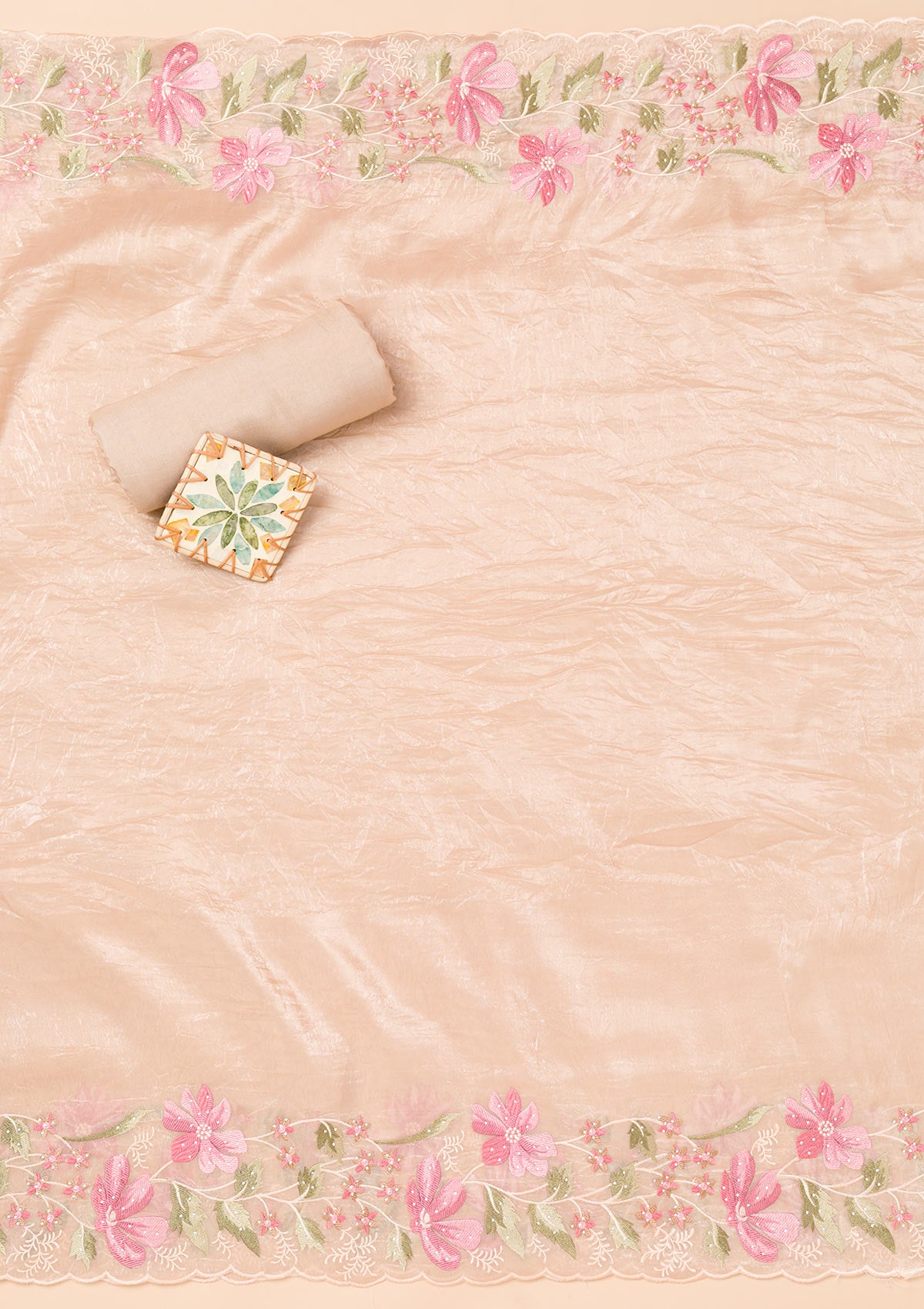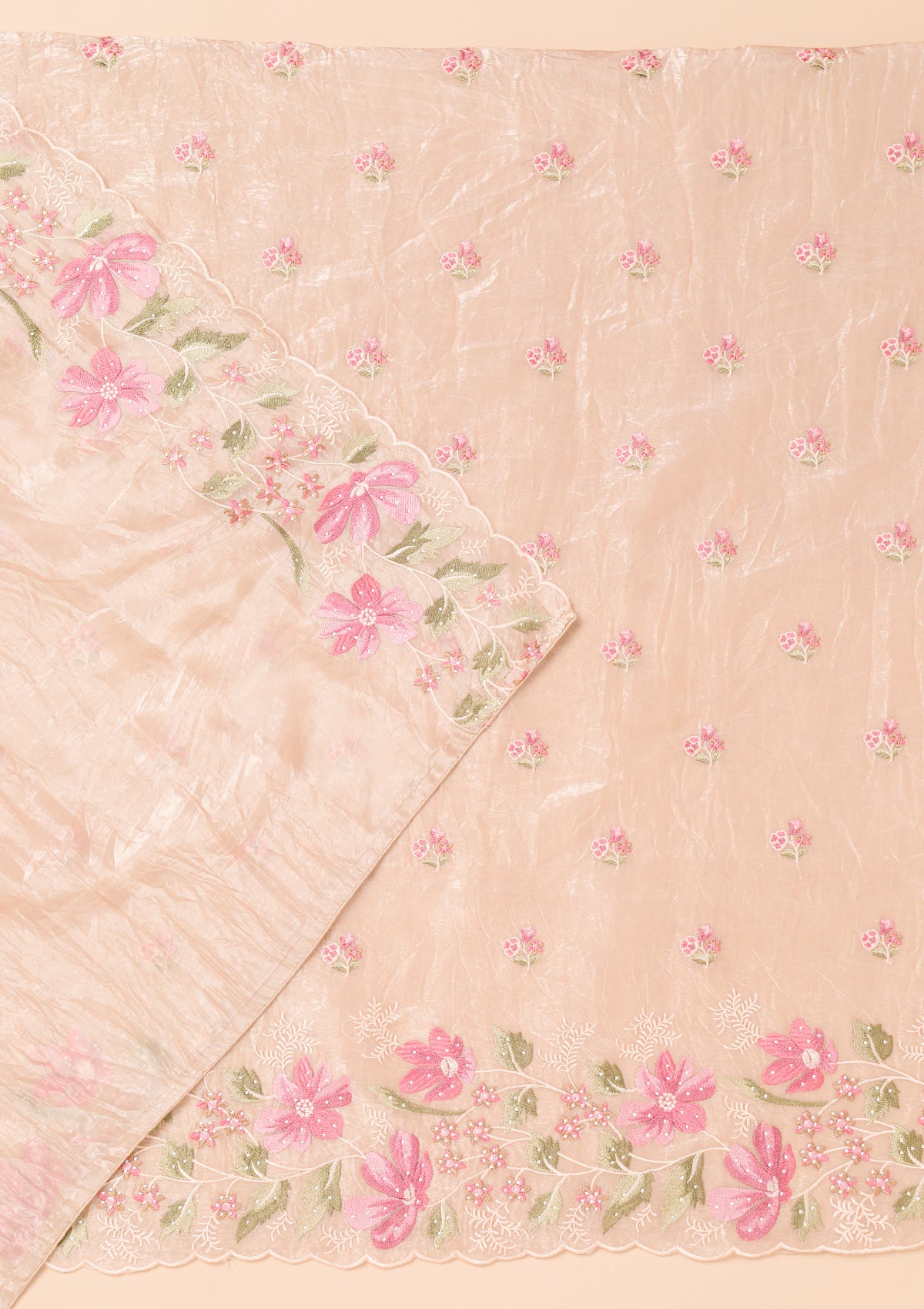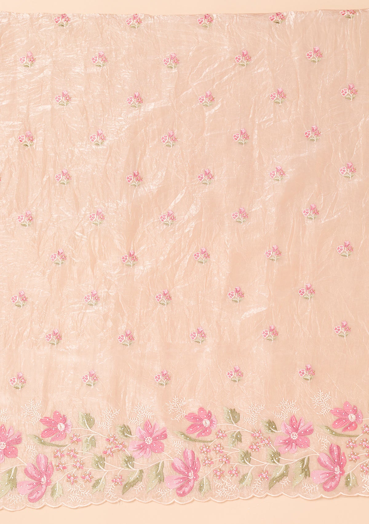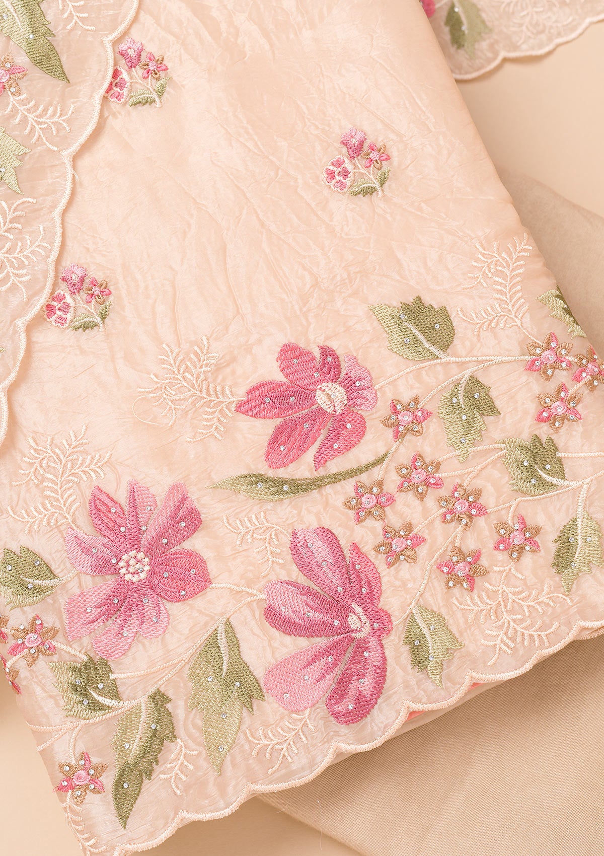 Peach Threadwork Organza Unstitched Salwar Suit