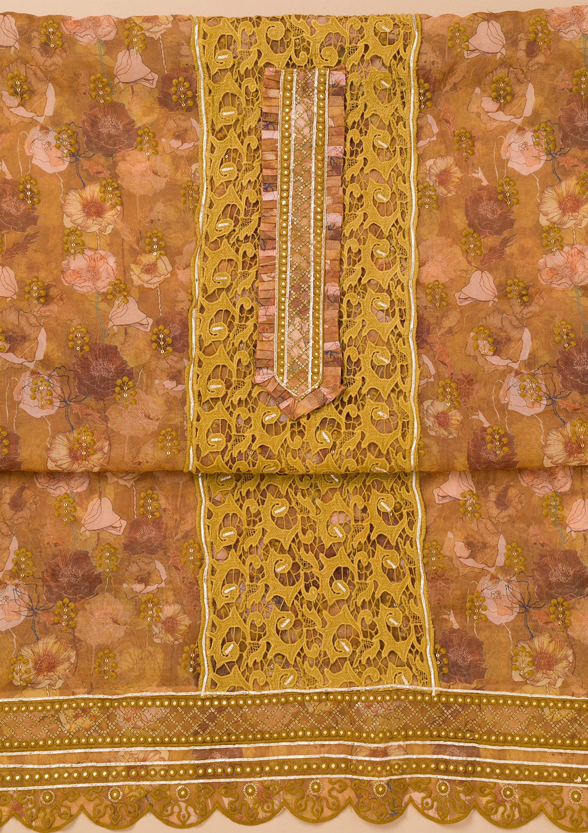 Mehendi Printed Organza Unstitched Salwar Suit