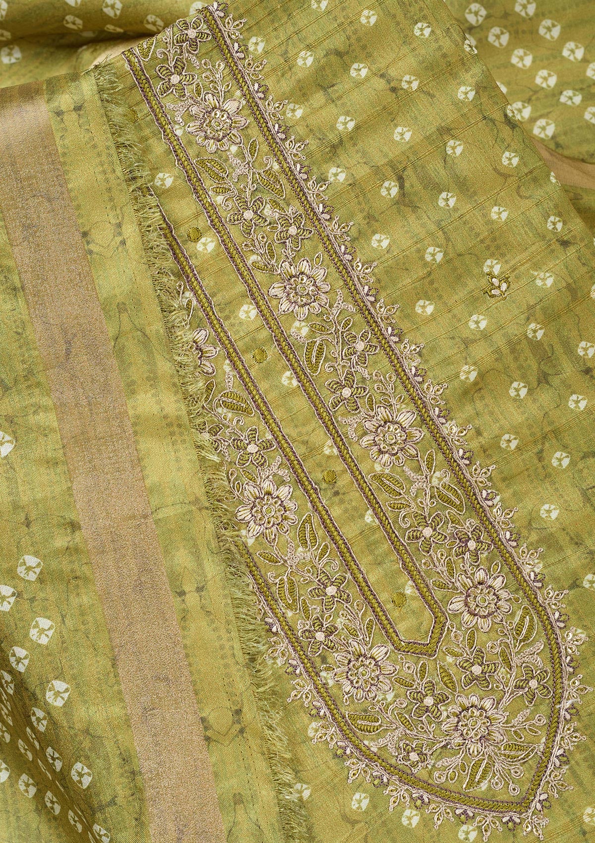Mehendi Threadwork Organza Unstitched Salwar Suit