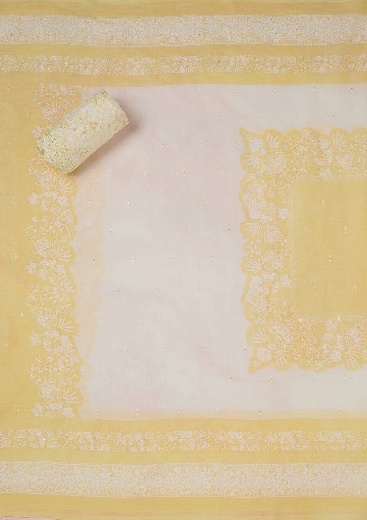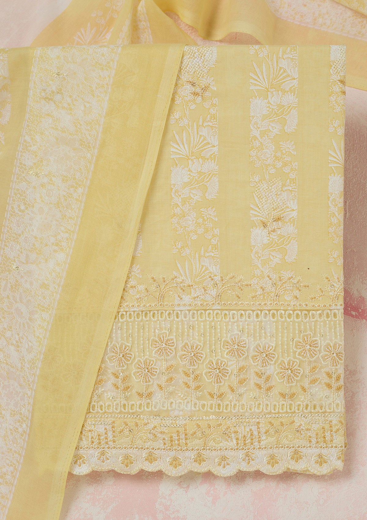Yellow Threadwork Cotton Unstitched Salwar Suit