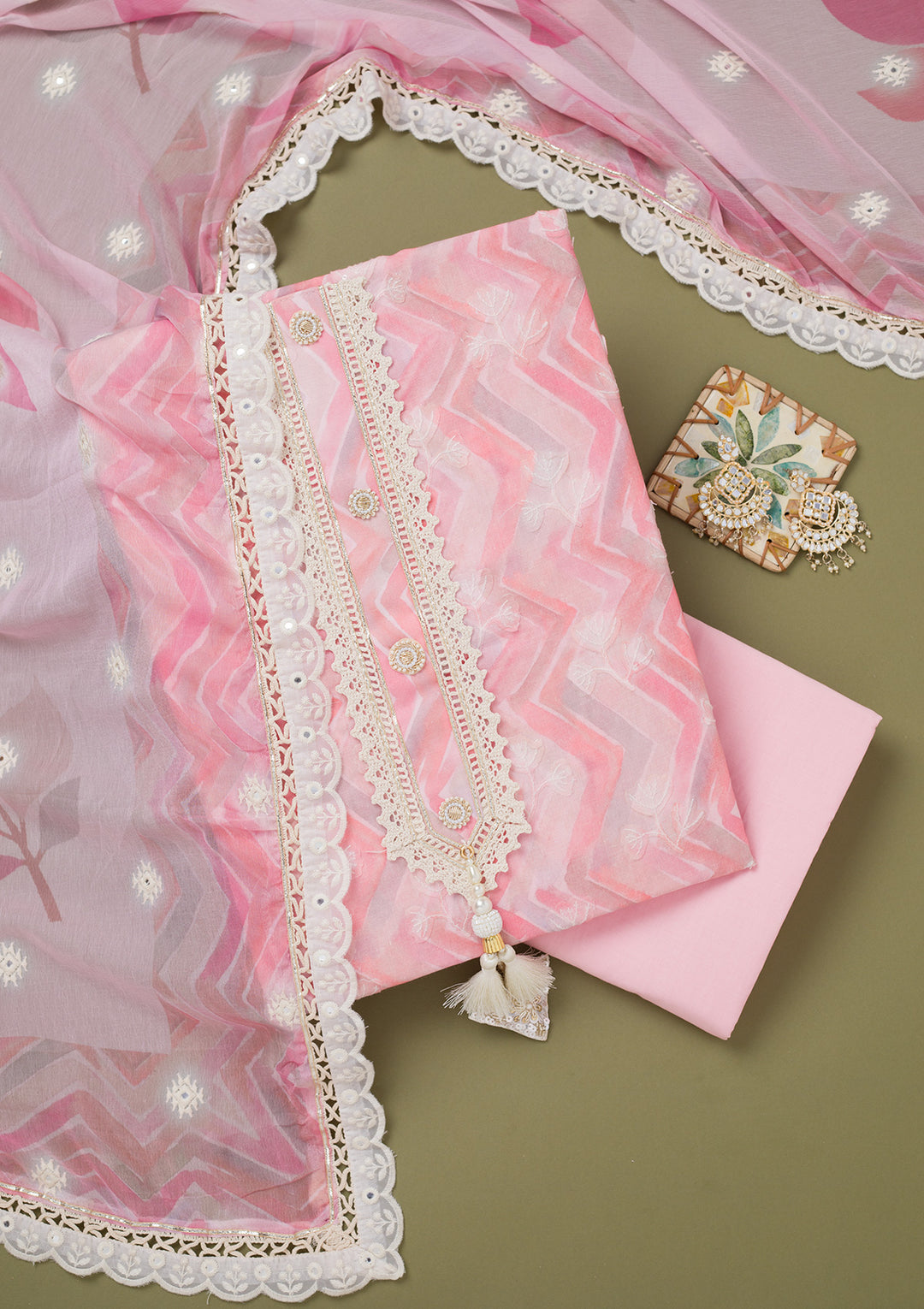 | Pink Threadwork Cotton Unstitched Salwar Suit | ₹ 3,143 | |