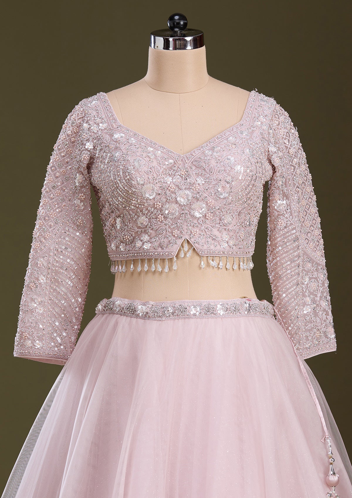 Baby Pink Silver Zariwork Net Readymade Lehenga