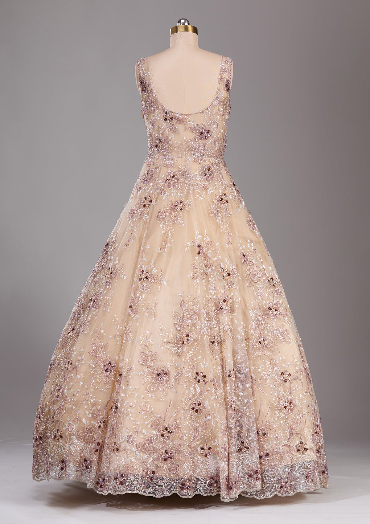 Beige Stonework Net Readymade Gown