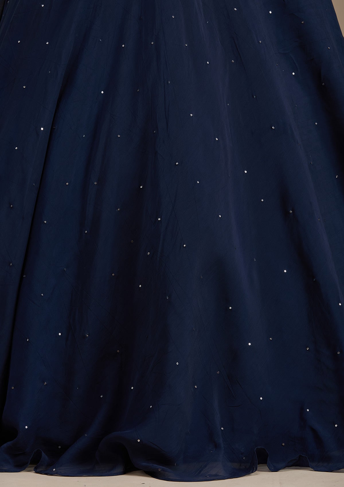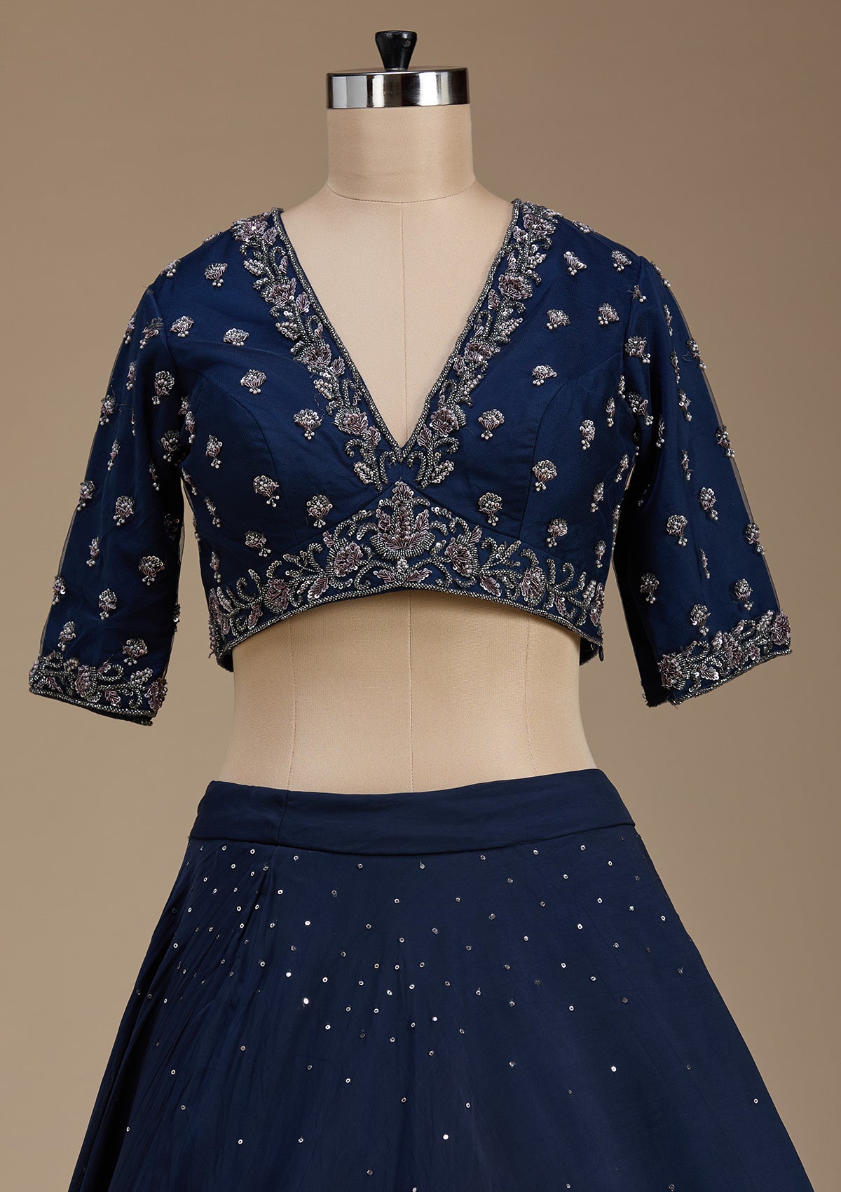 Navy Blue Zardosi Tissue Readymade Lehenga