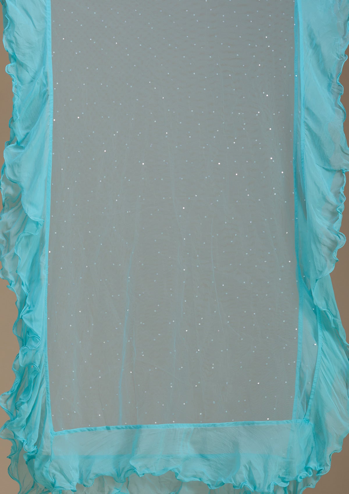 Dive into the opulent world of vibrant festivities with Koskii’s Navy Blue Tissue Lehenga, adorned with exquisite Zardosi embroidery that dances playfully in the light. This fabric whispers tales of luxury while its spirited embroidery showcases meticulous craftsmanship, making each twirl feel like a celebration of tradition entwined with modern elegance. Perfect for those who dress to tell a story, this piece promises to turn heads and warm hearts at any festive gathering.
