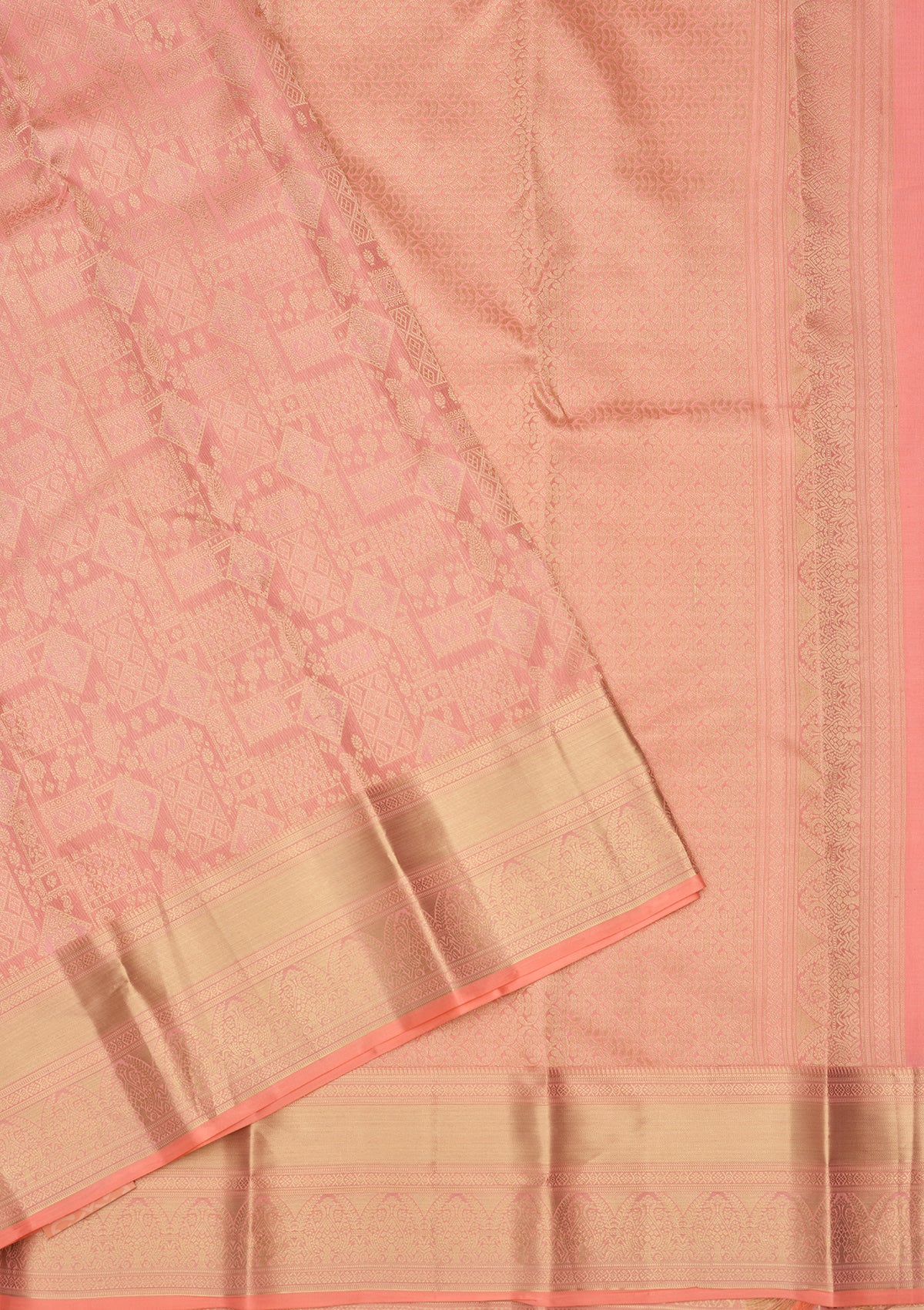 Peach Zariwork (Gold) Silk Saree