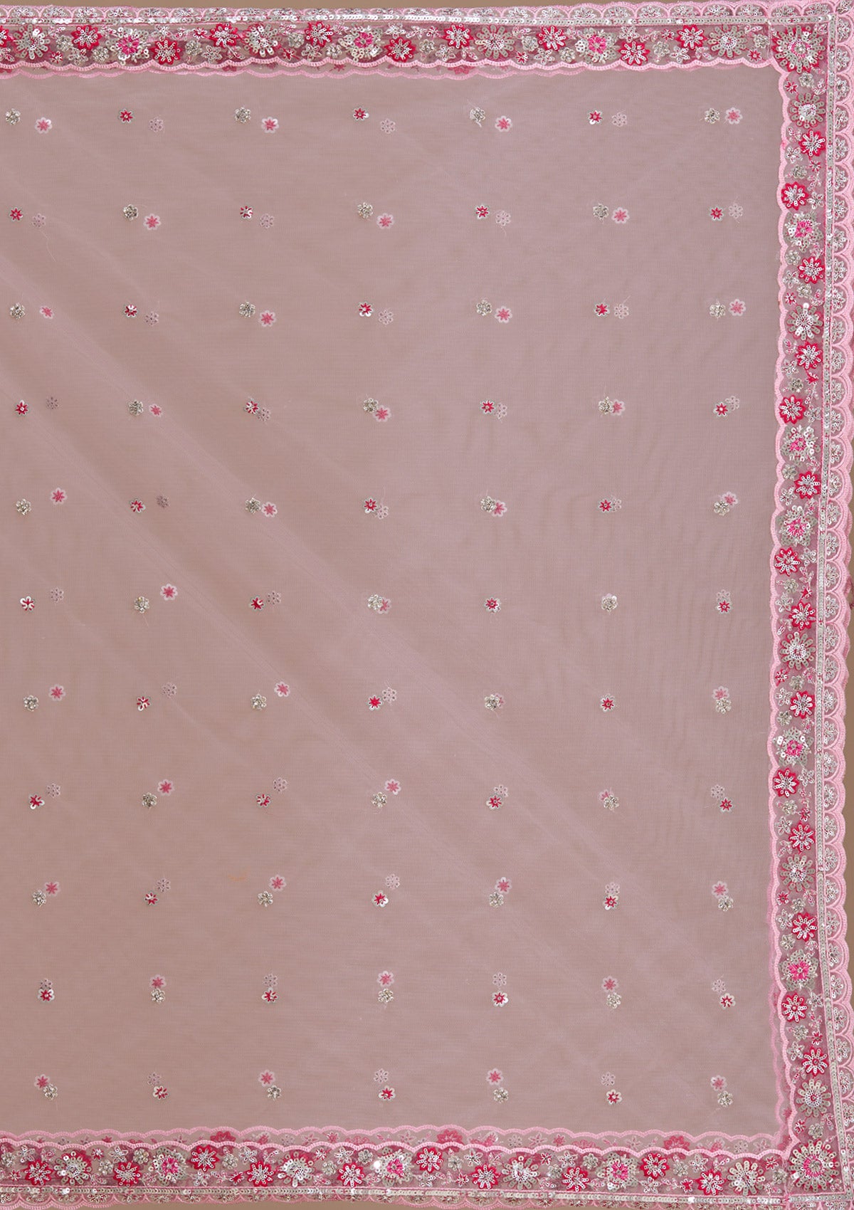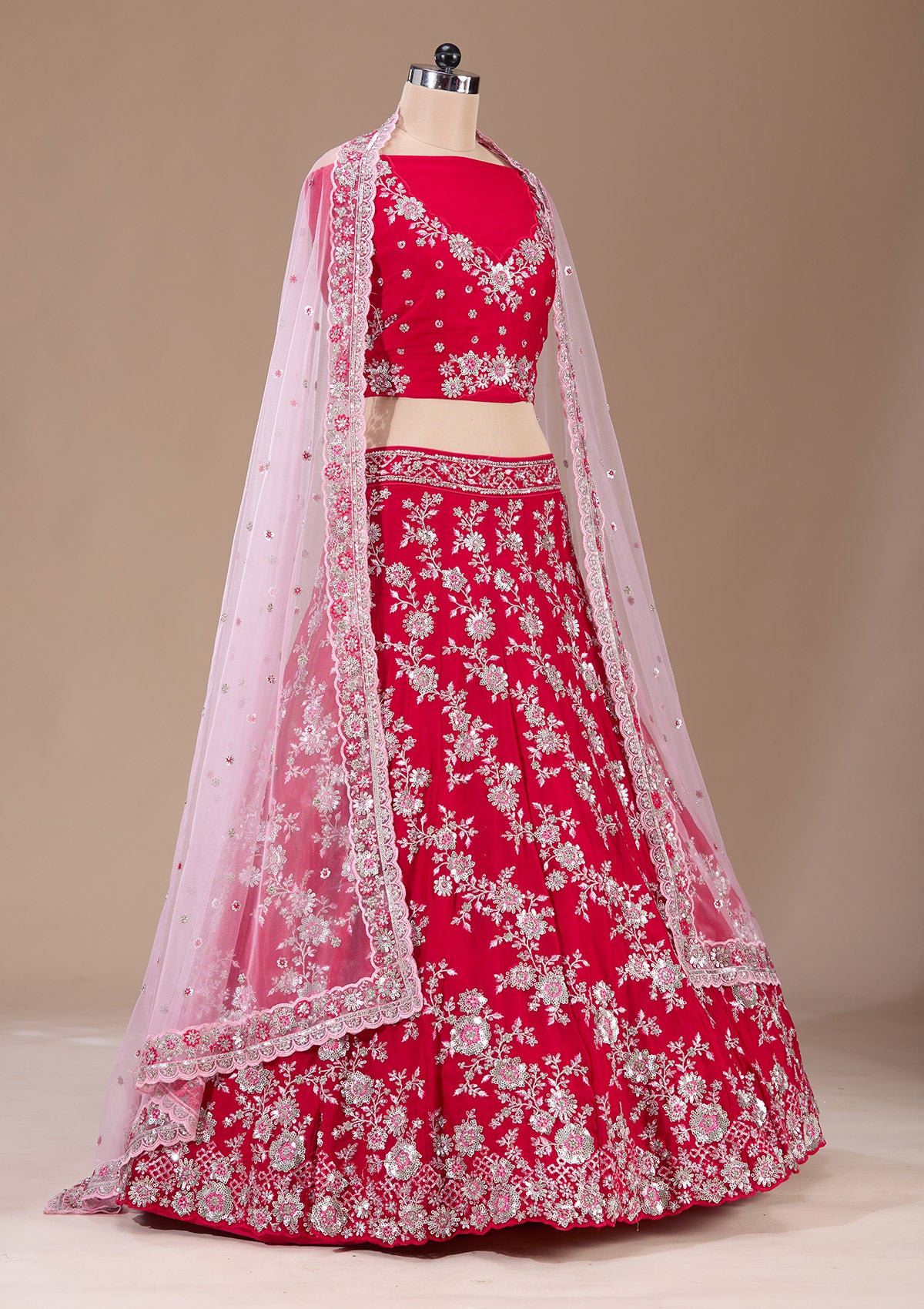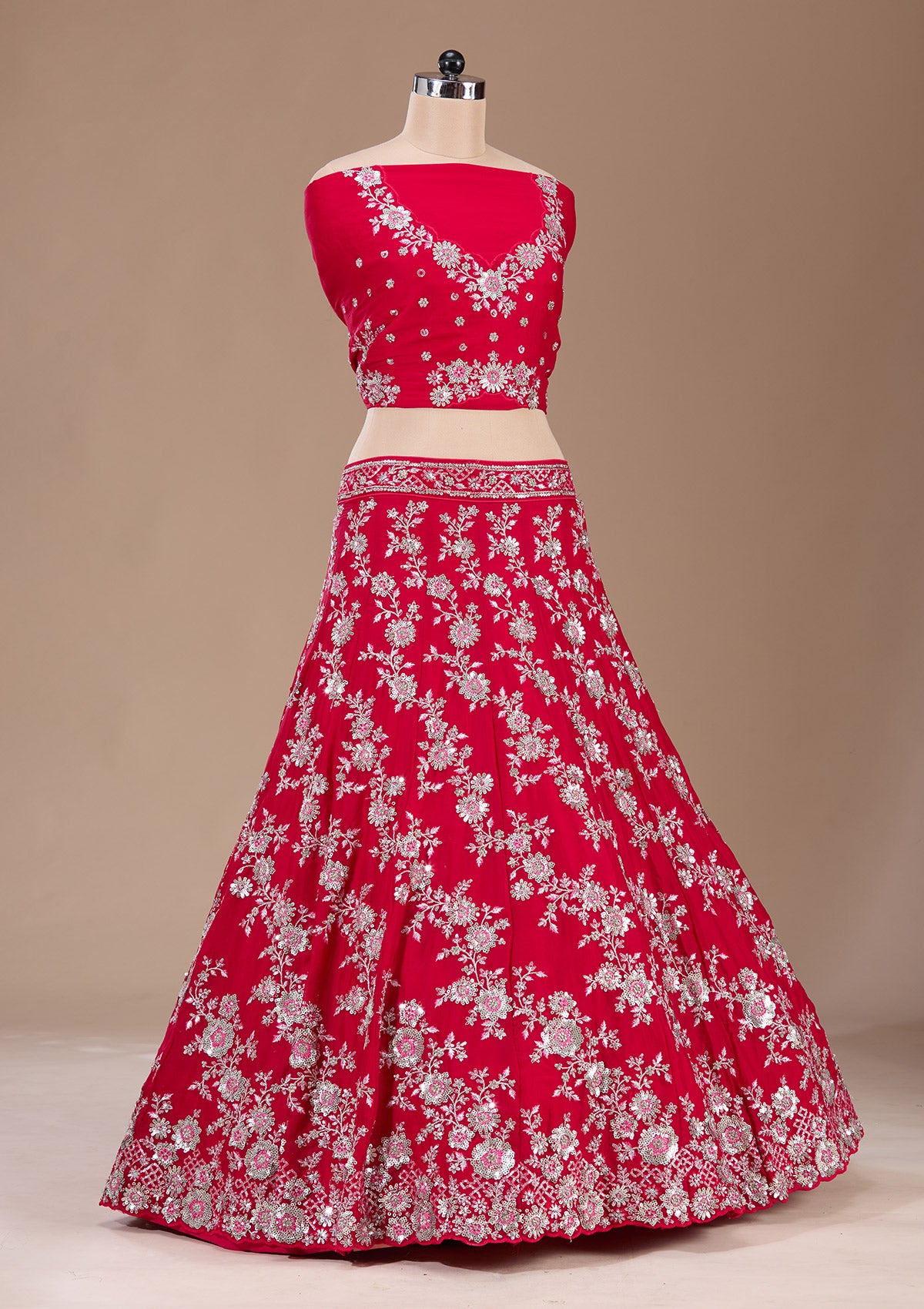 Rani Pink Sequins Silk Semi-Stitched Lehenga
