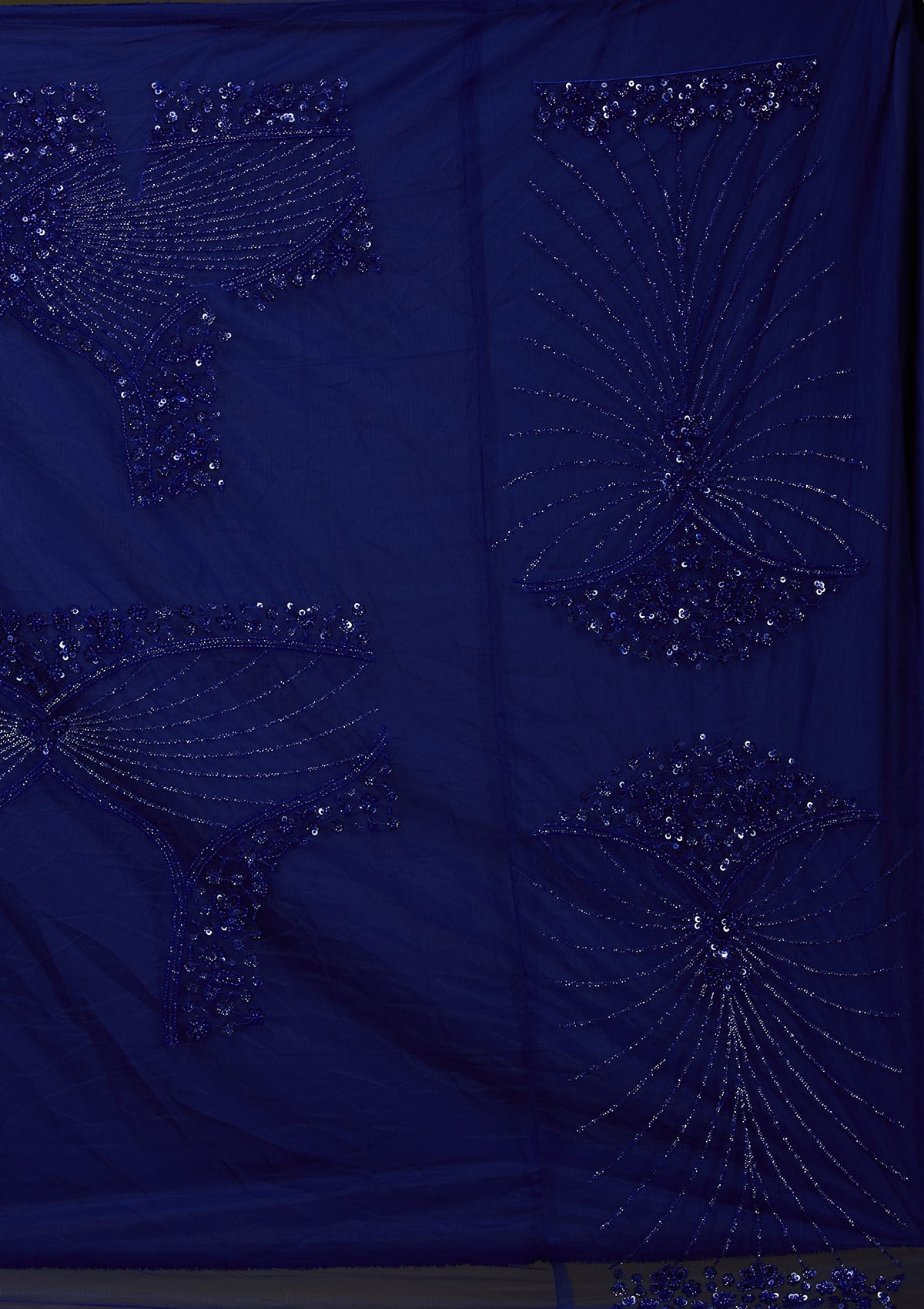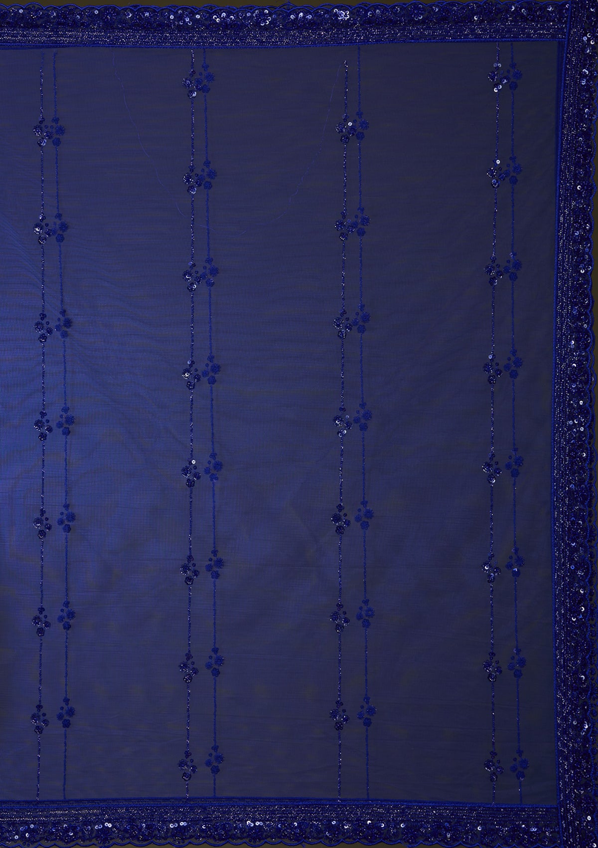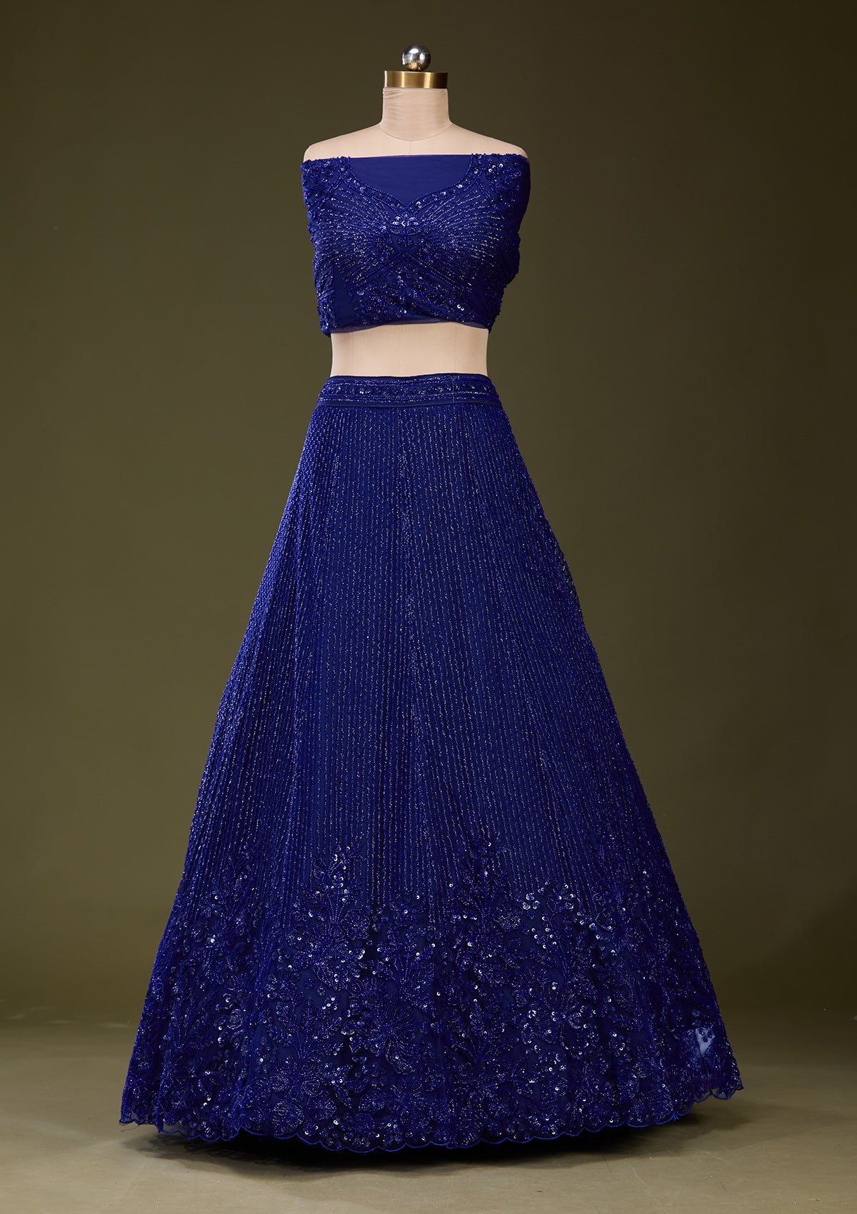 Royal Blue Sequins Net Semi-Stitched Lehenga