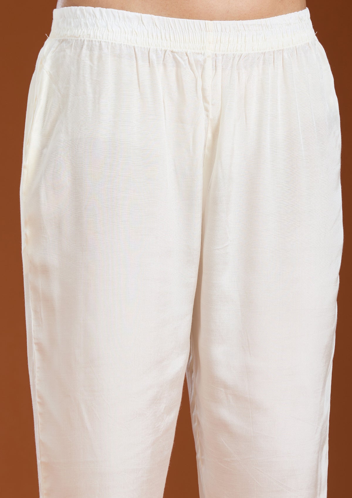 Cream Threadwork Chanderi Readymade Salwar Suit