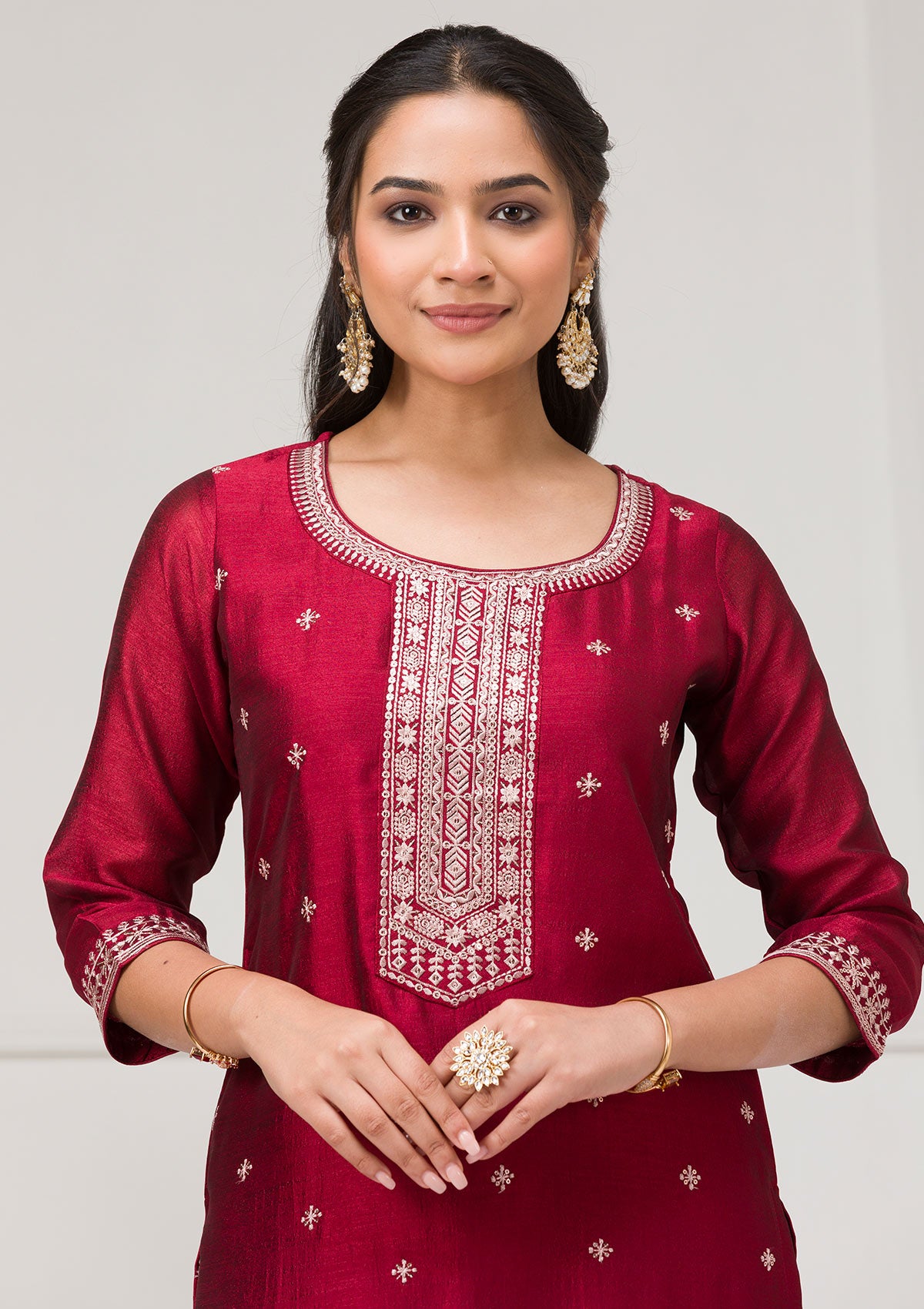 Maroon Sequins Raw Silk Readymade Salwar Suit