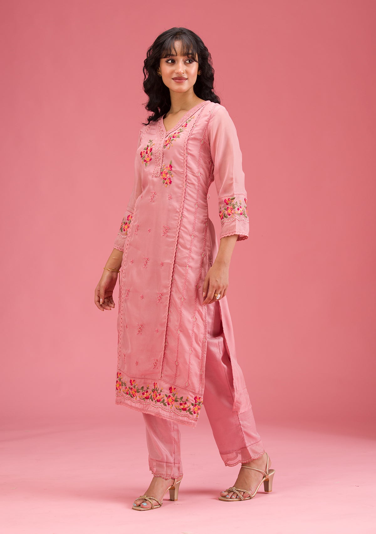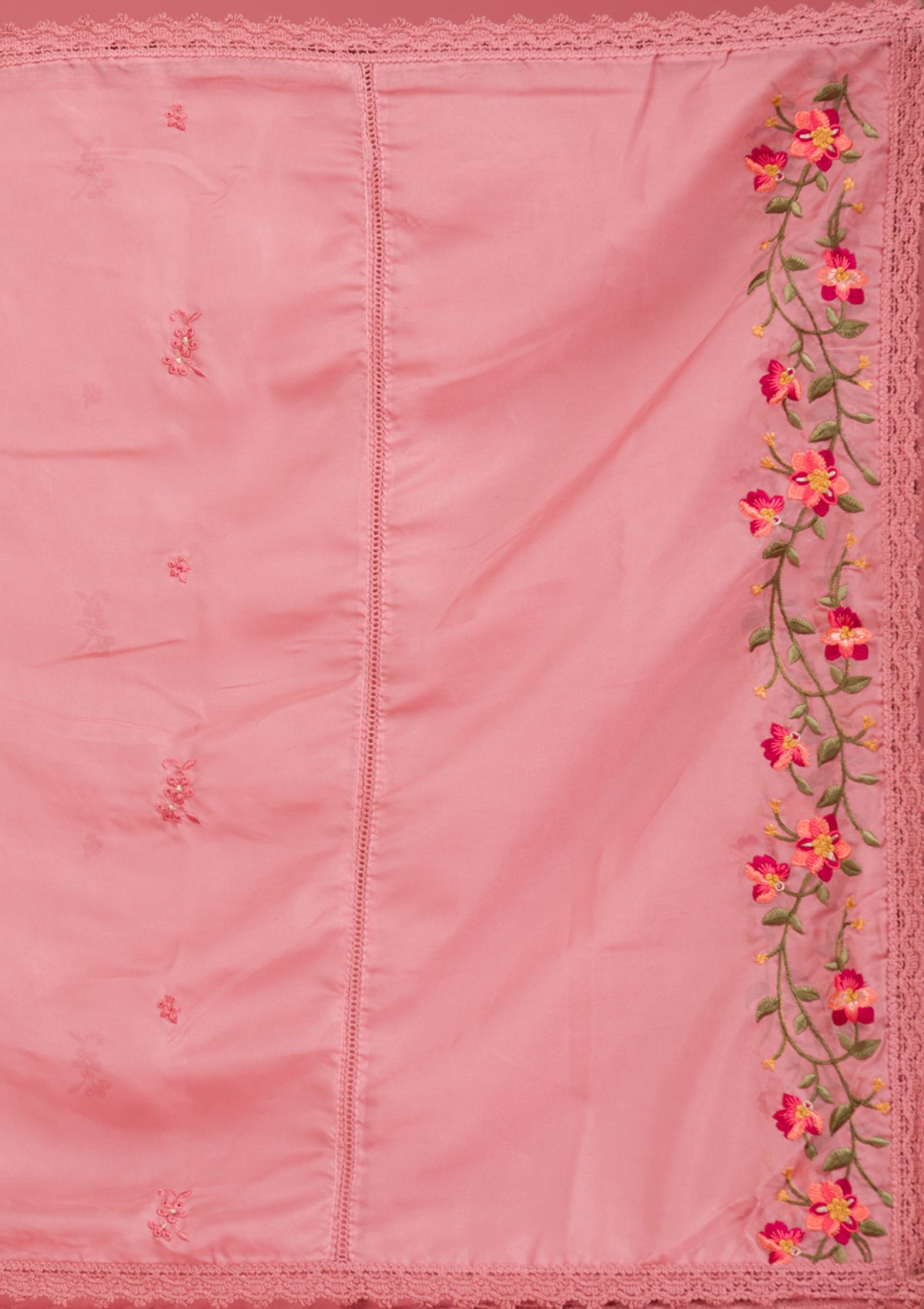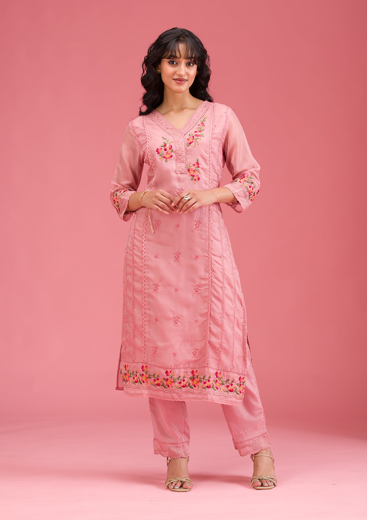 Onion Pink Threadwork Crepe Readymade Salwar Suit