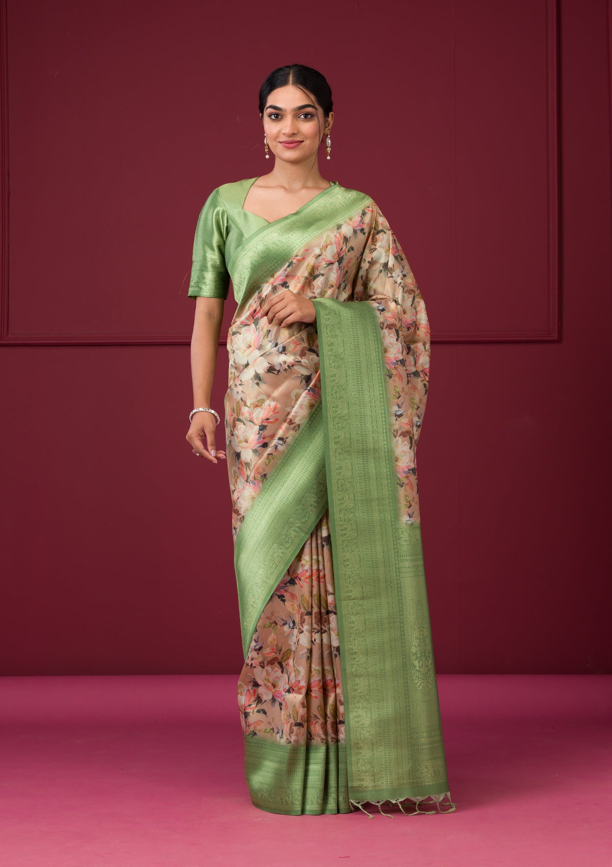 Beige Saree in Art Silk fabric. The Saree is elevated with Printed embroidery. It comes with an Unstitched blouse. Comes with the Koskii promise of premium quality.
