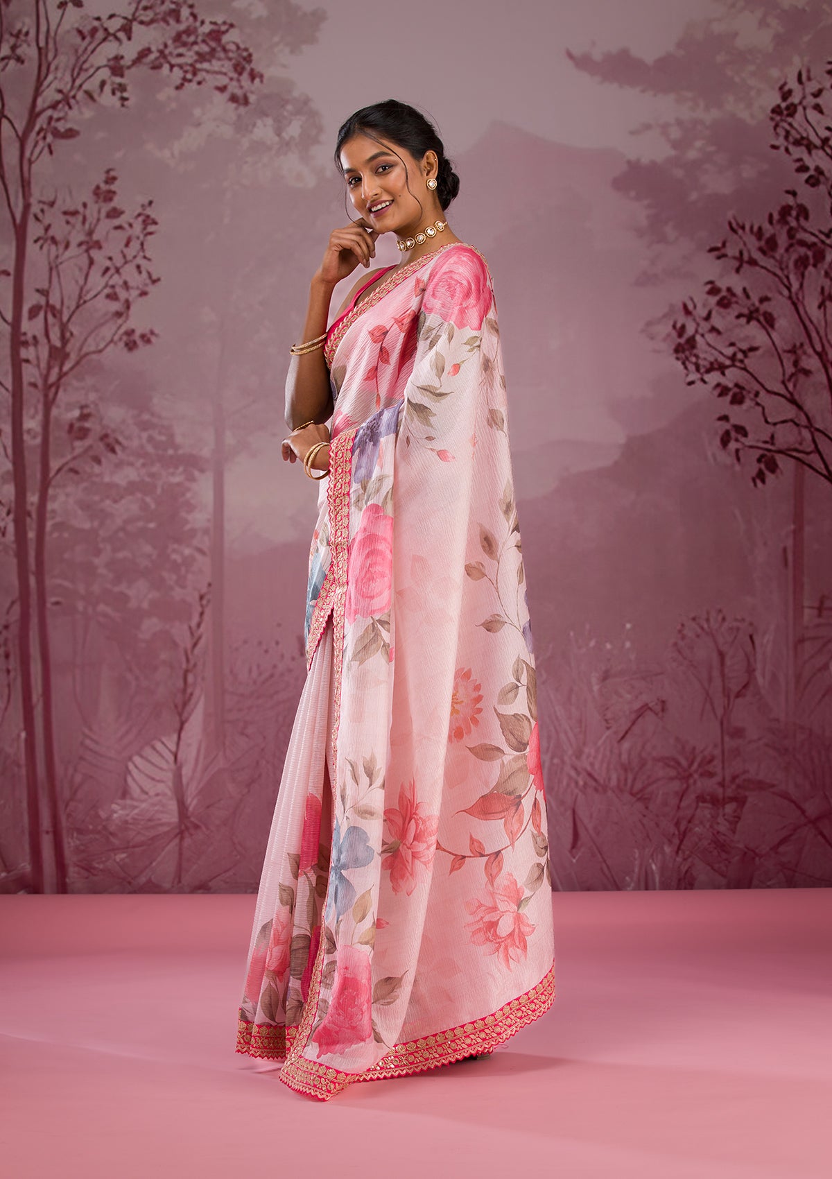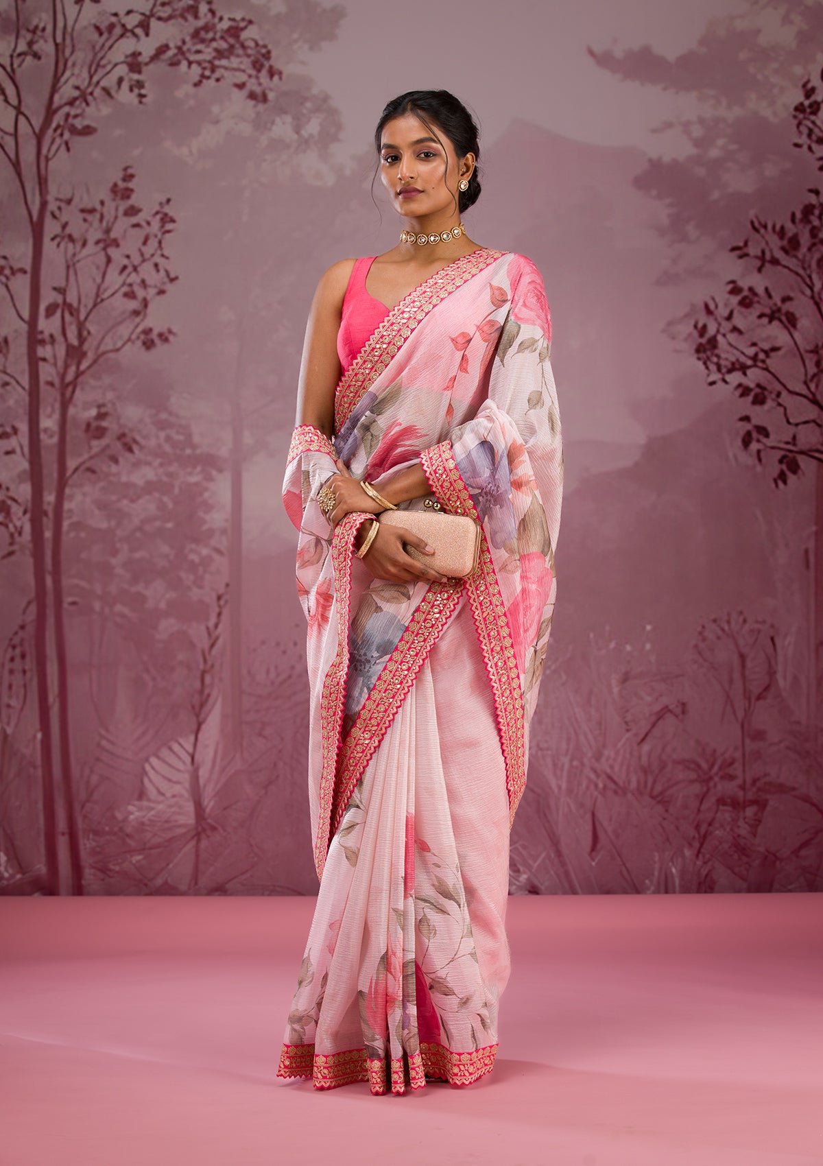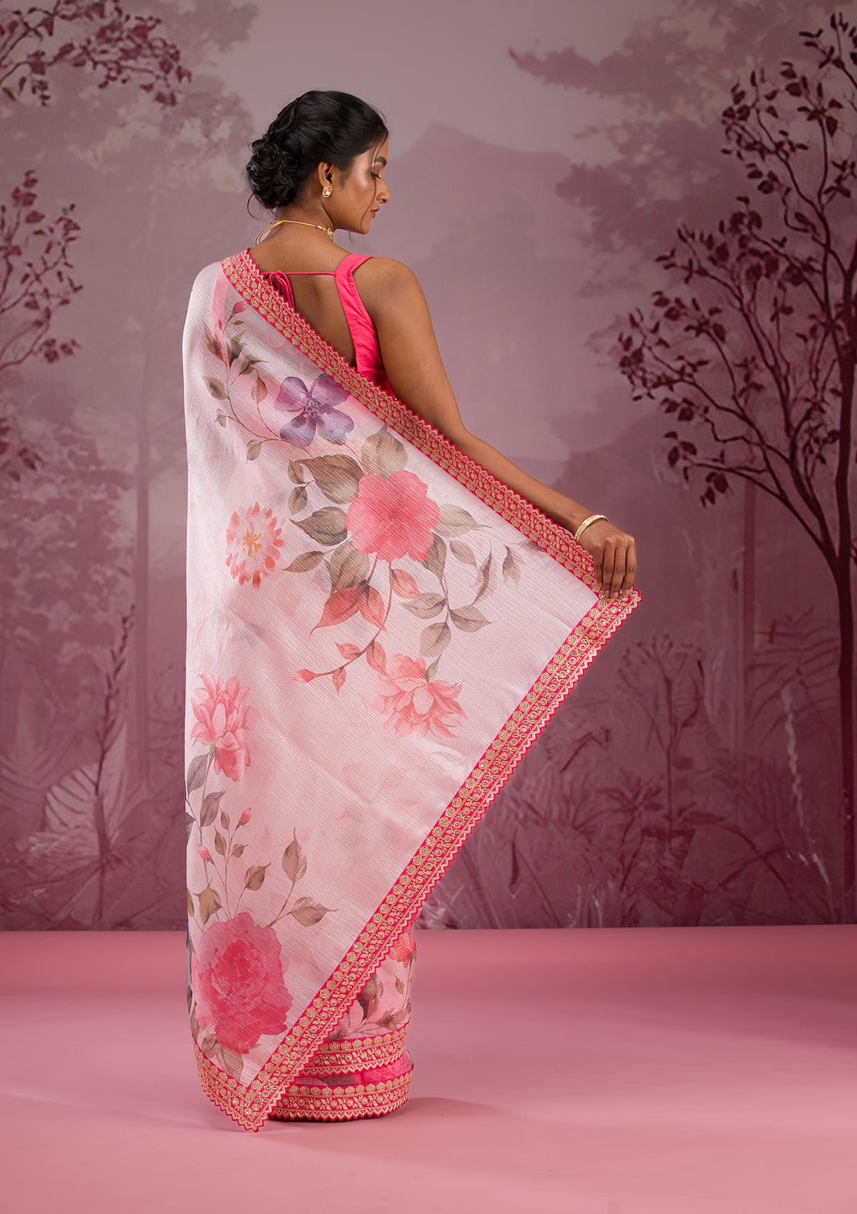 Cream Saree in Georgette fabric. The Saree is elevated with Printed embroidery. It comes with an Unstitched blouse. Comes with the Koskii promise of premium quality.