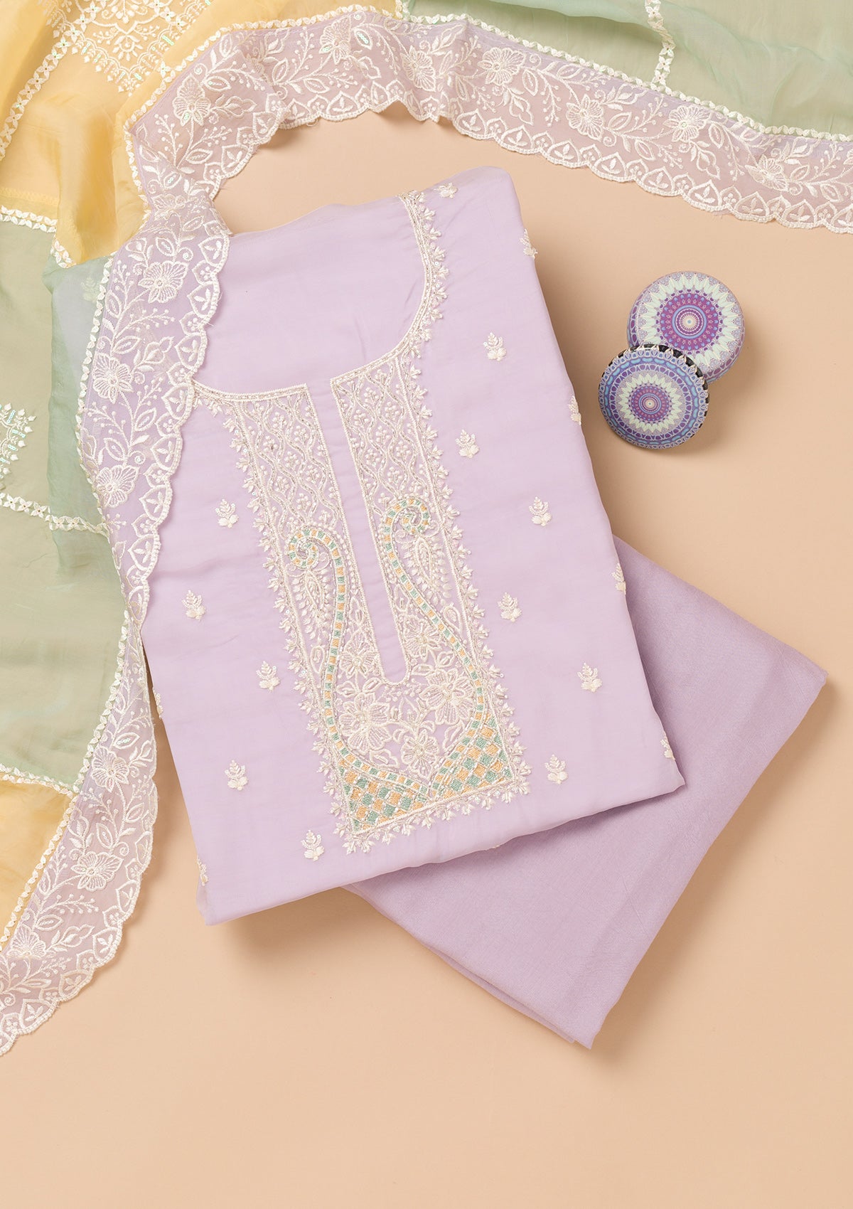 Lavender Threadwork Organza Unstitched Salwar Suit