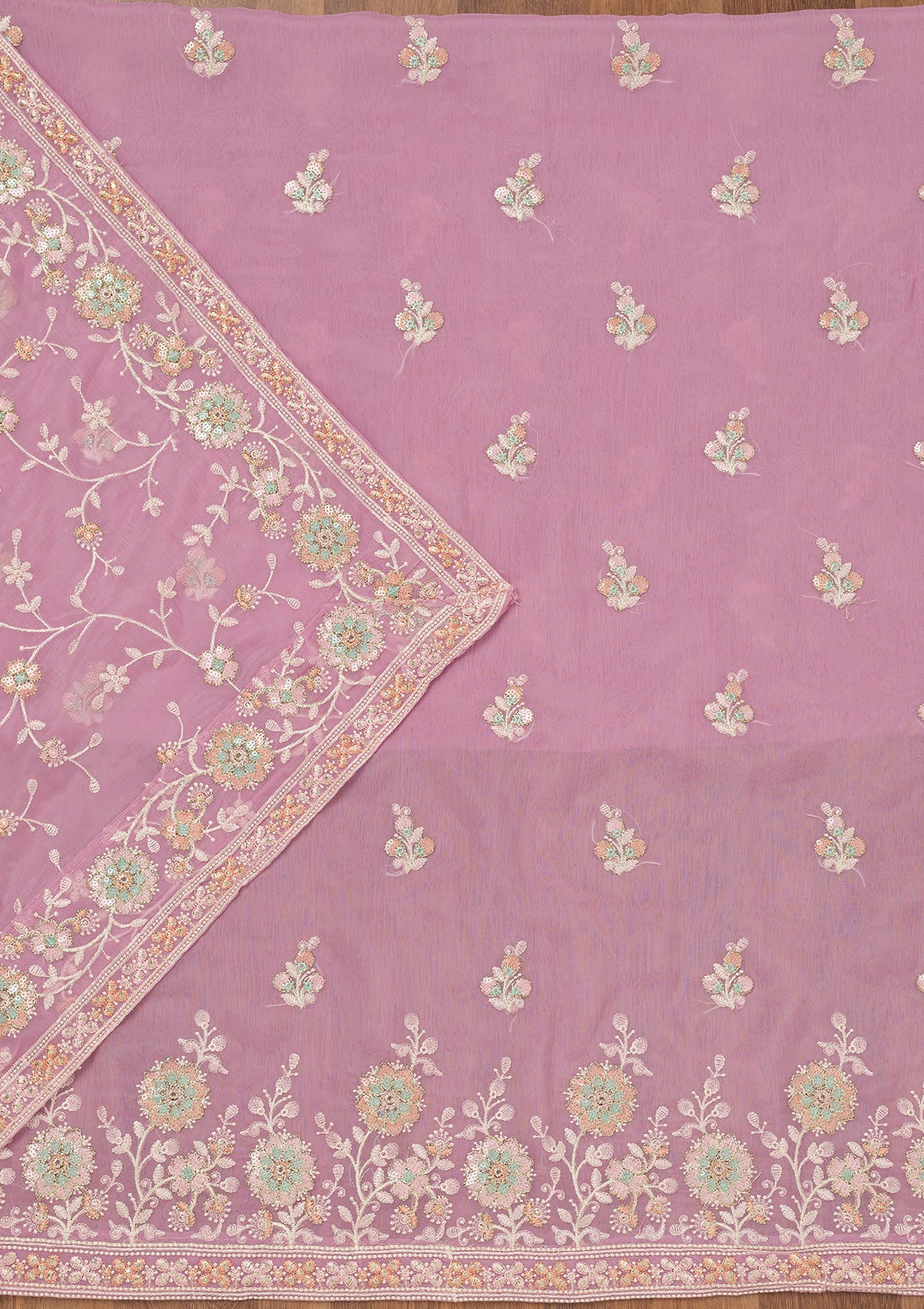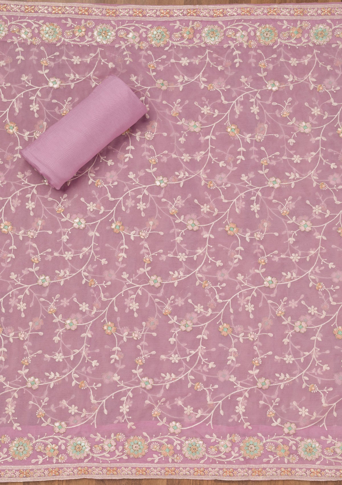 Lavender Threadwork Semi Crepe Unstitched Salwar Suit