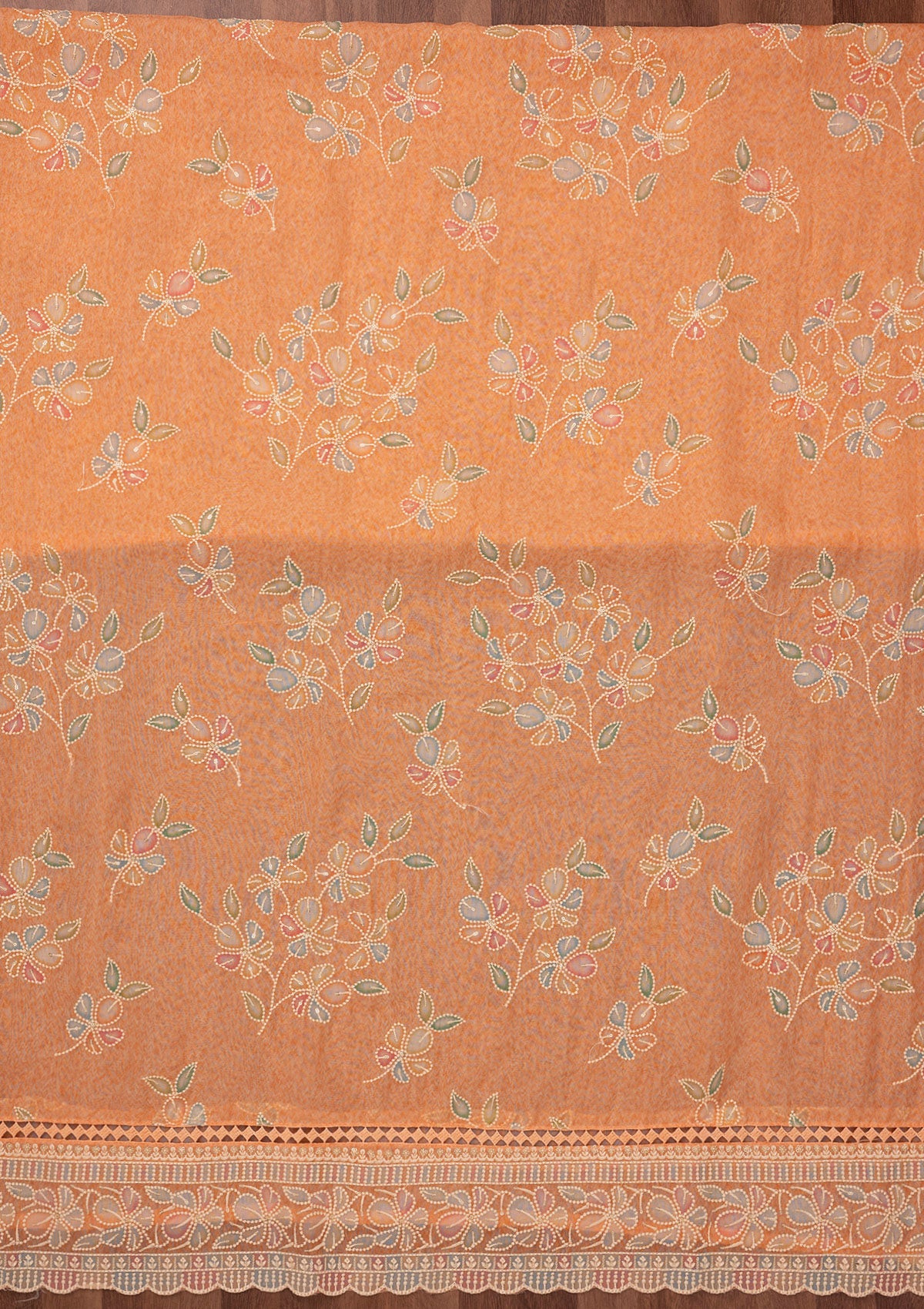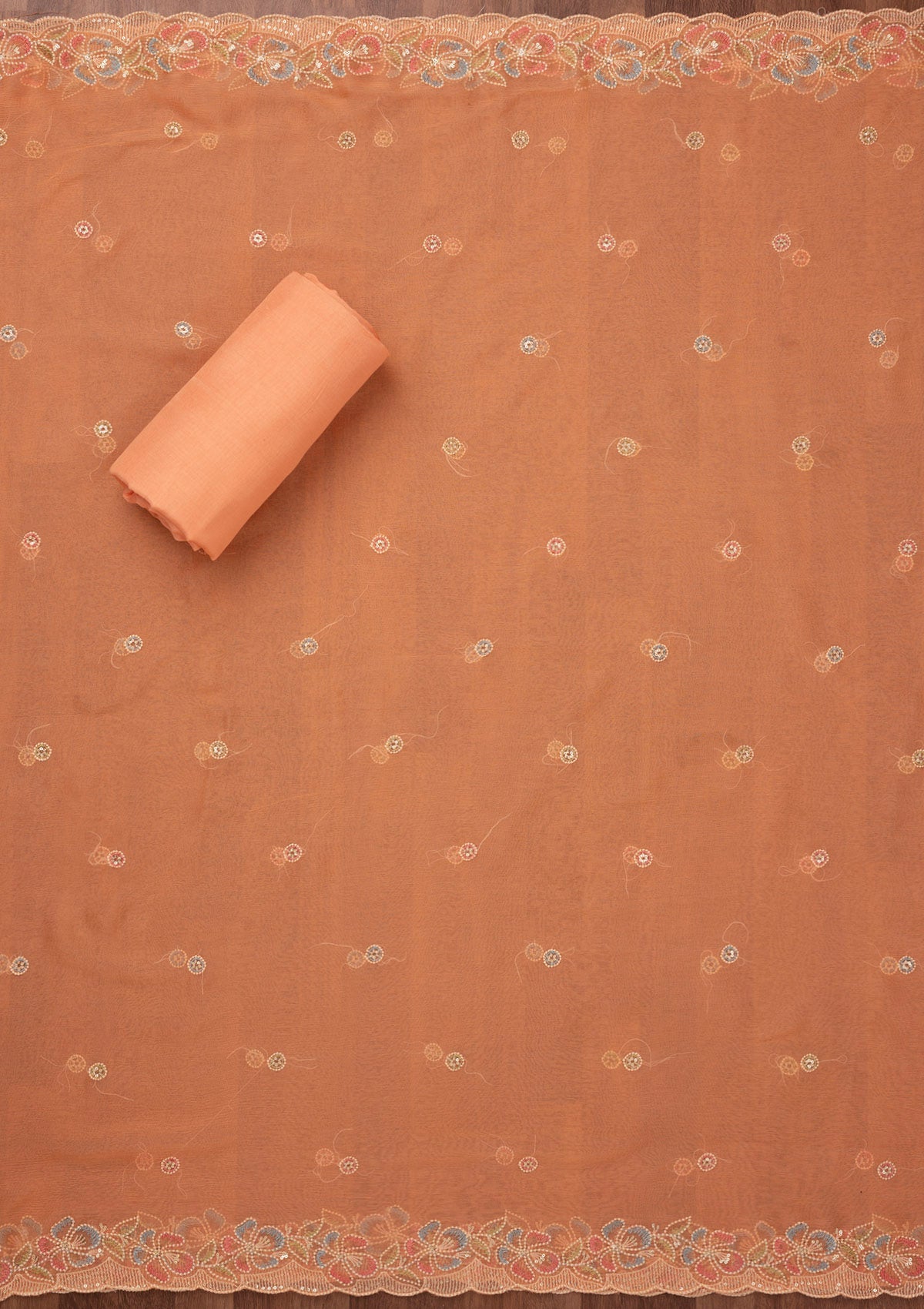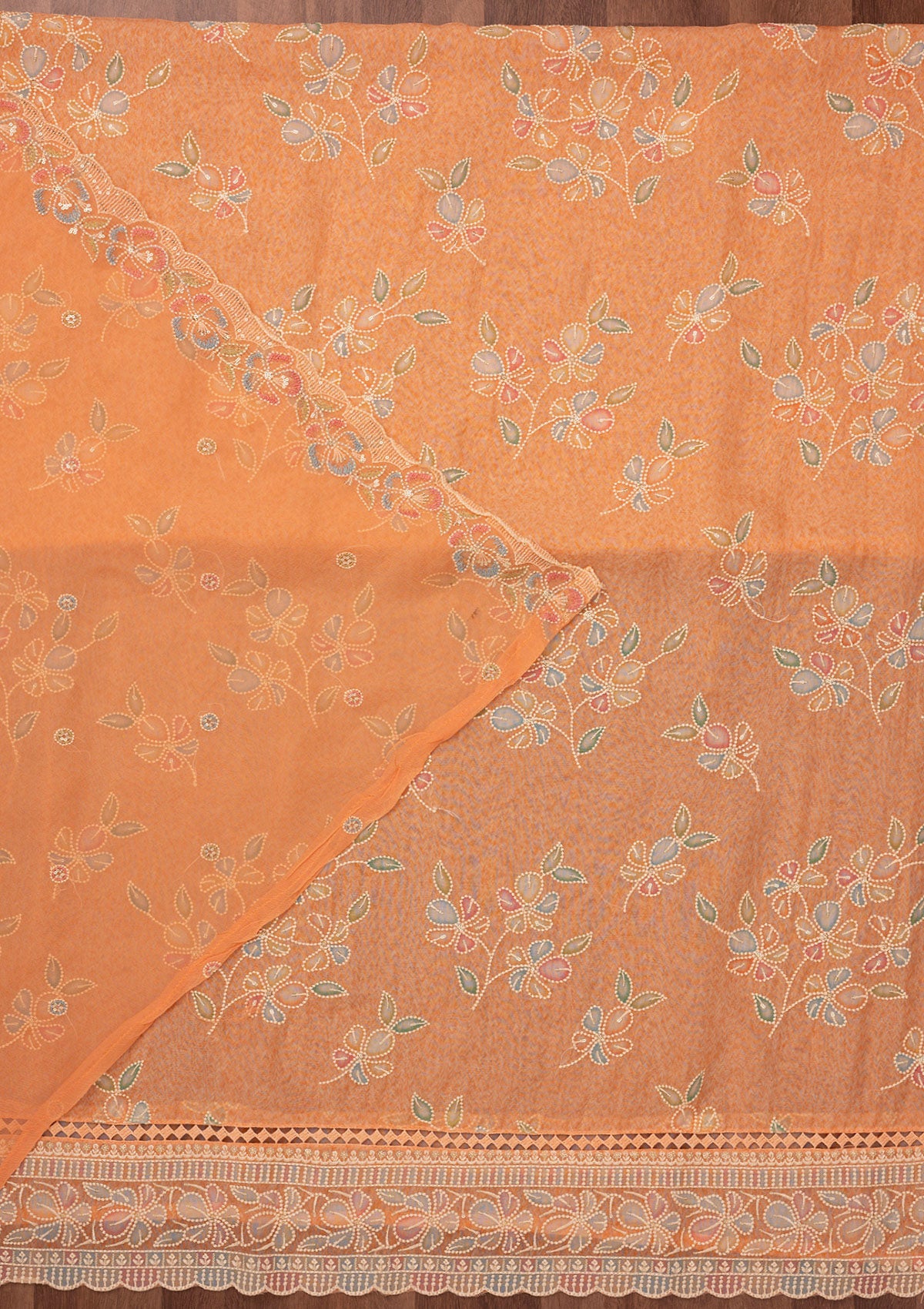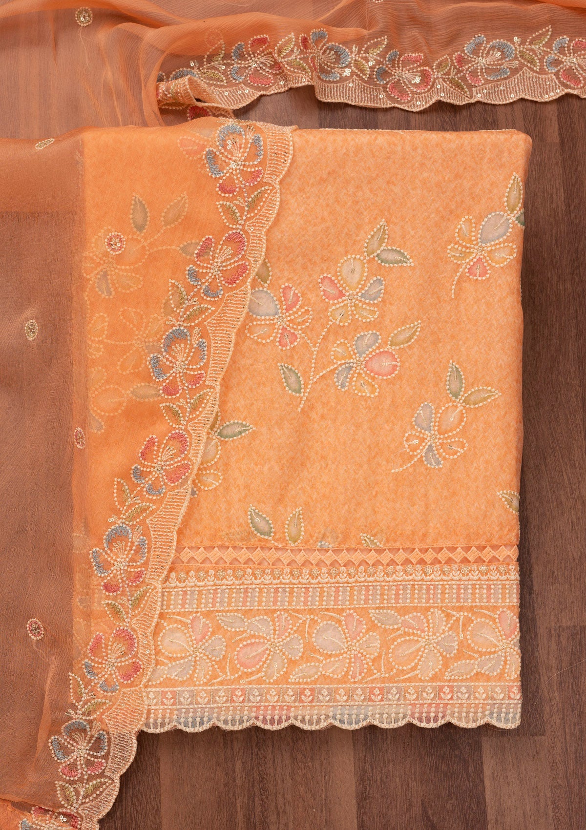 Peach Threadwork Semi Crepe Unstitched Salwar Suit
