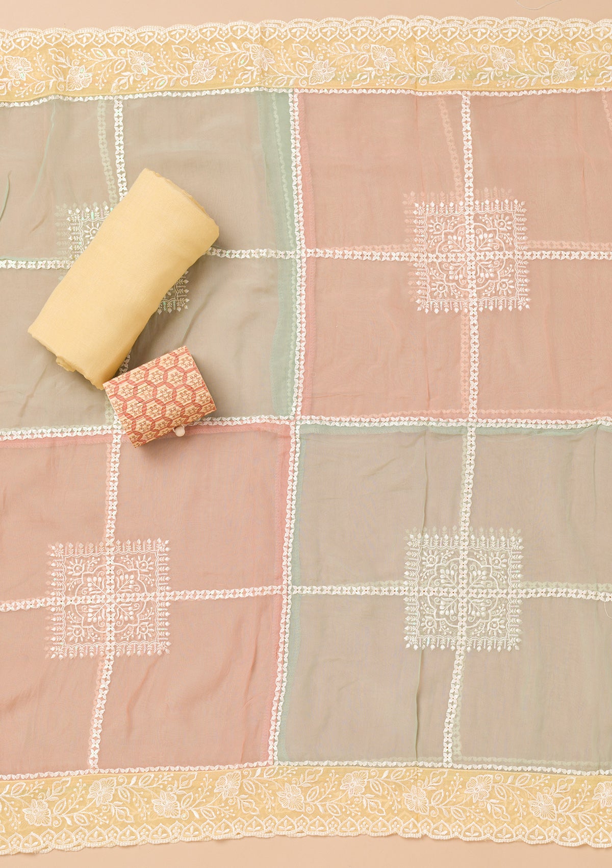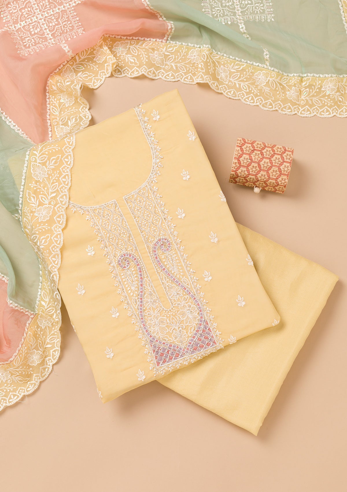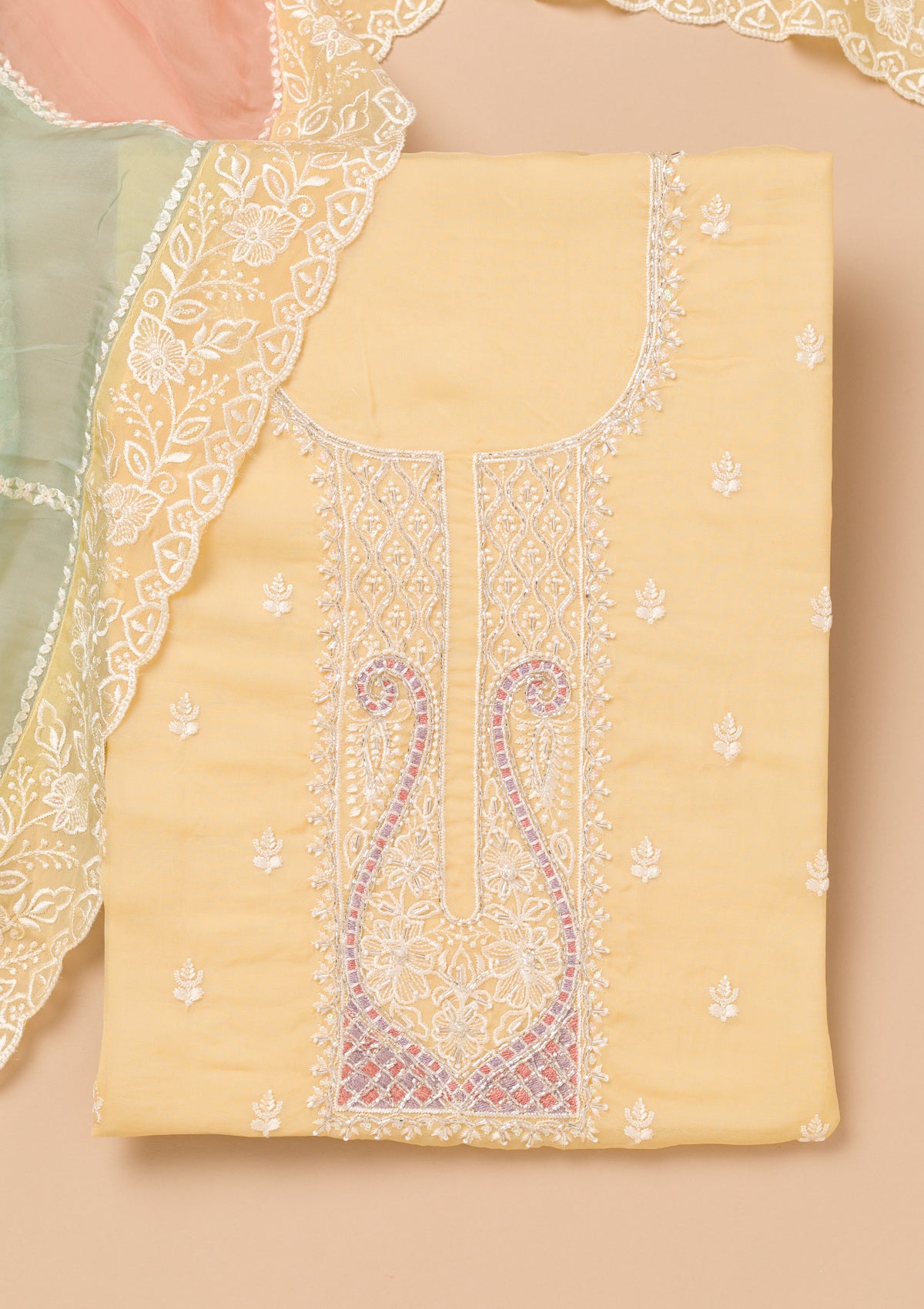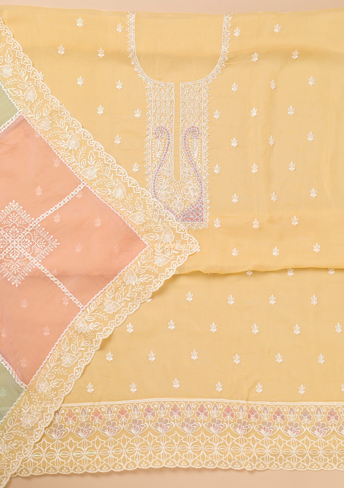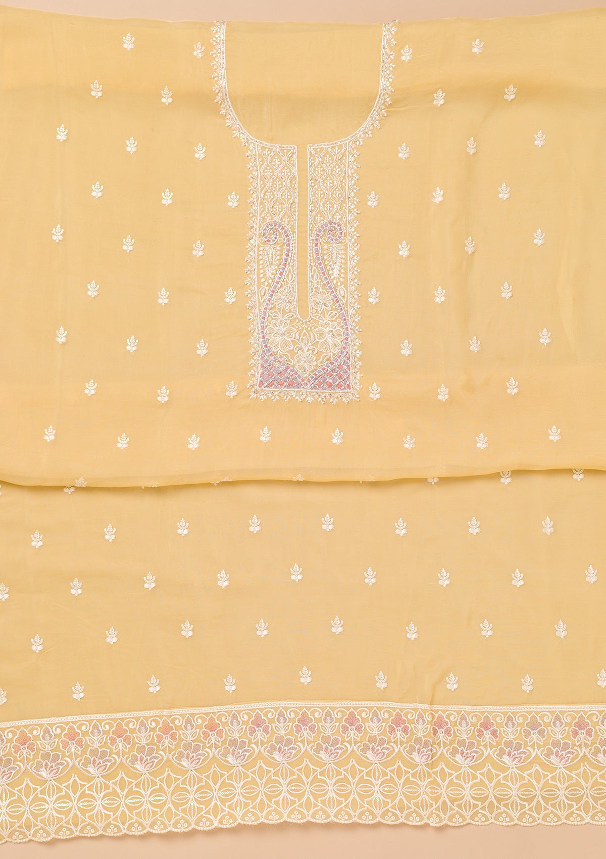 Yellow Threadwork Organza Unstitched Salwar Suit