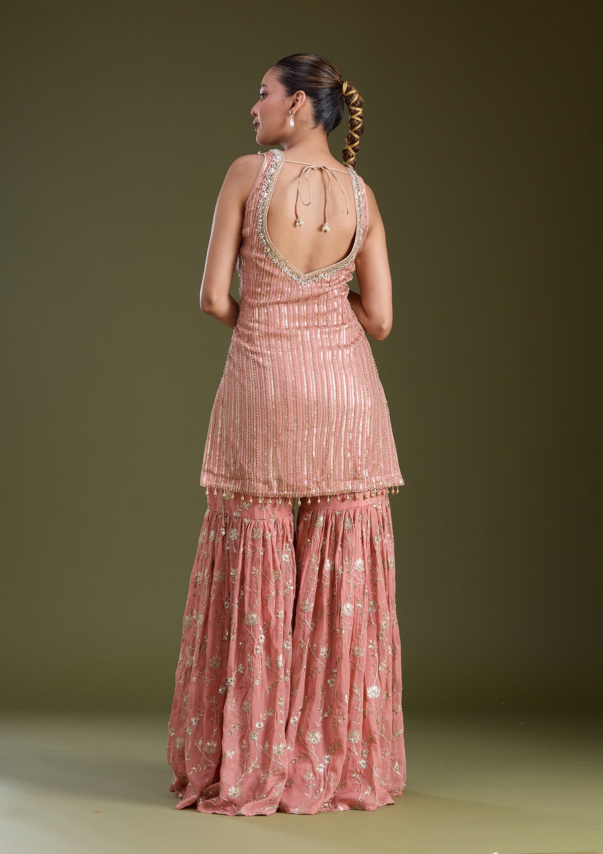 Peach Sequins Georgette Readymade Salwar Suit