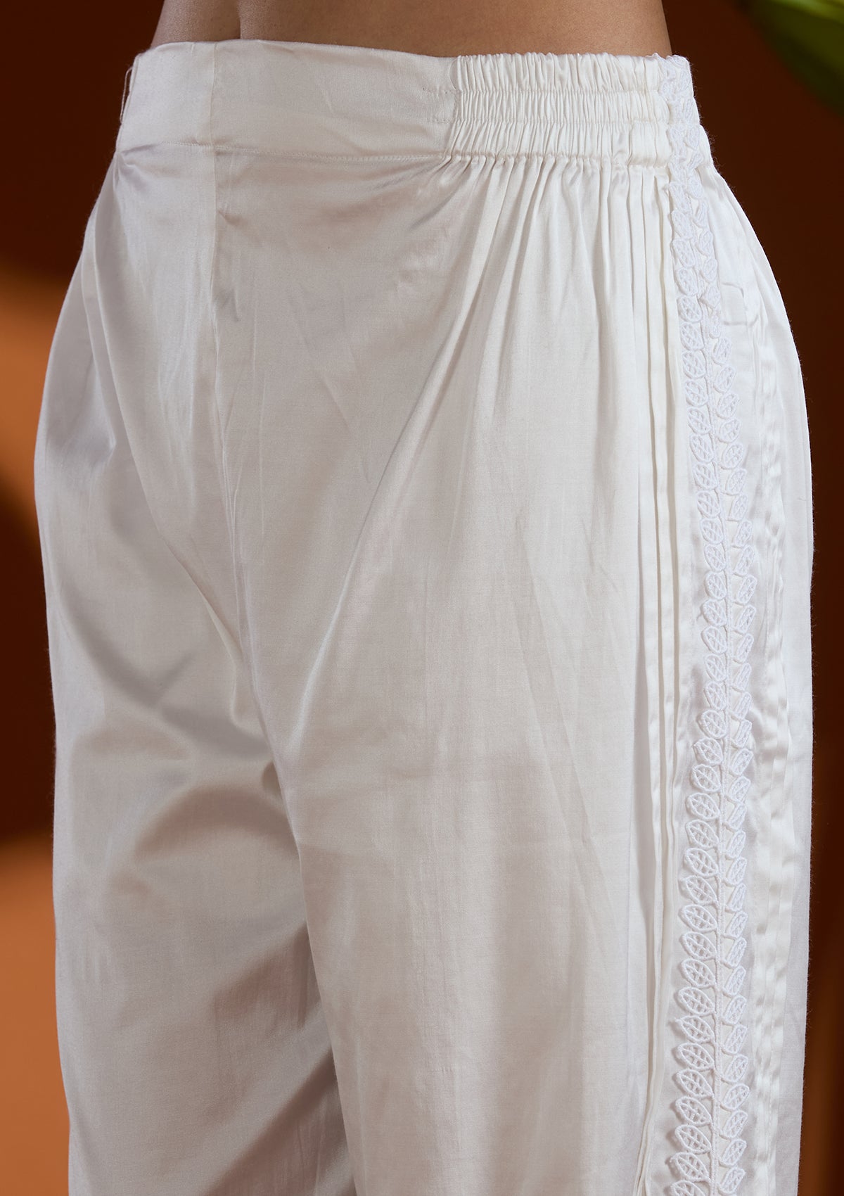 White Salwar_RM in Tissue fabric. The Salwar_RM is embellished with Threadwork embroidery. Accompanied with a bottom and dupatta. Comes with the Koskii promise of premium quality.