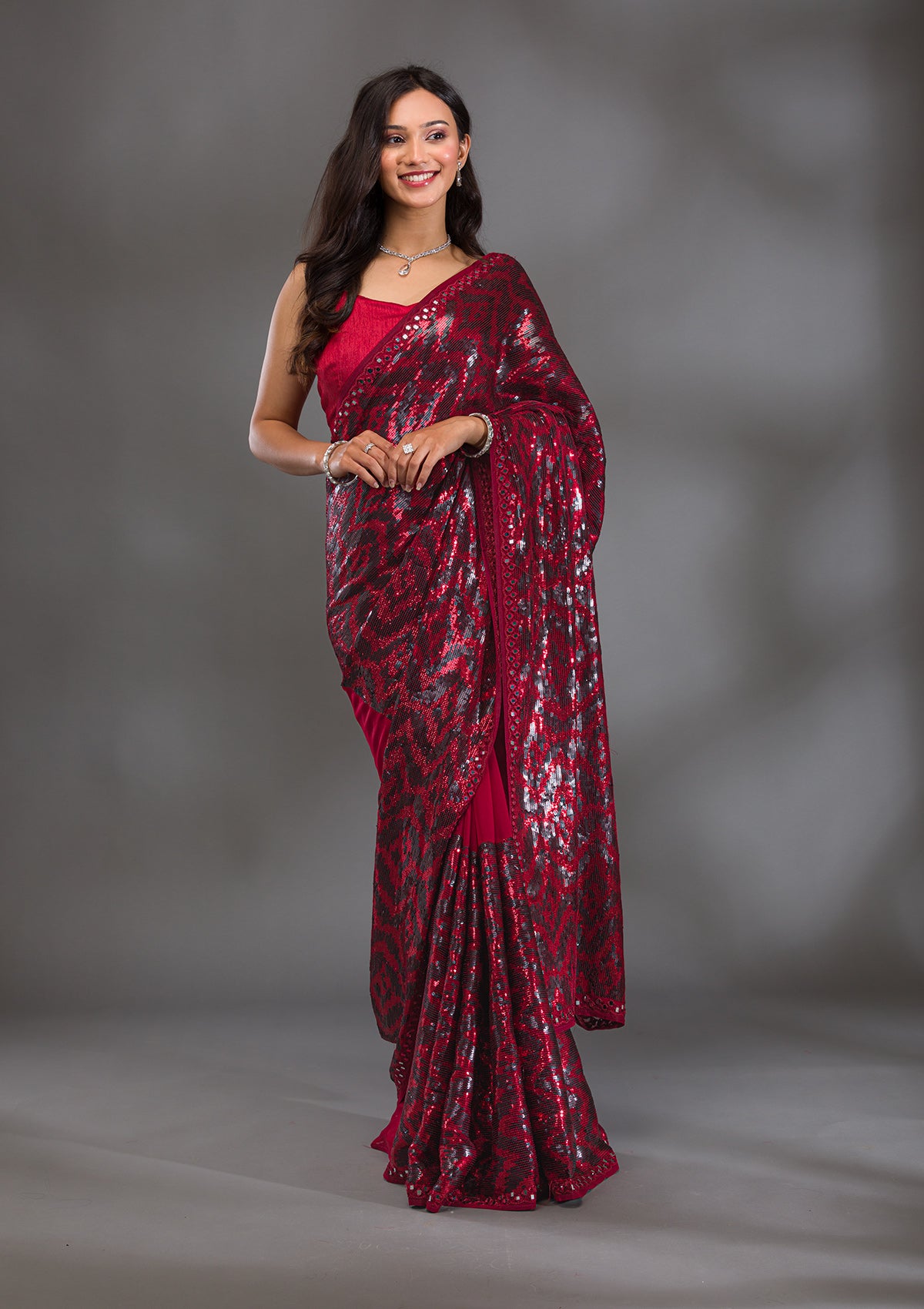Maroon Sequins Georgette Saree