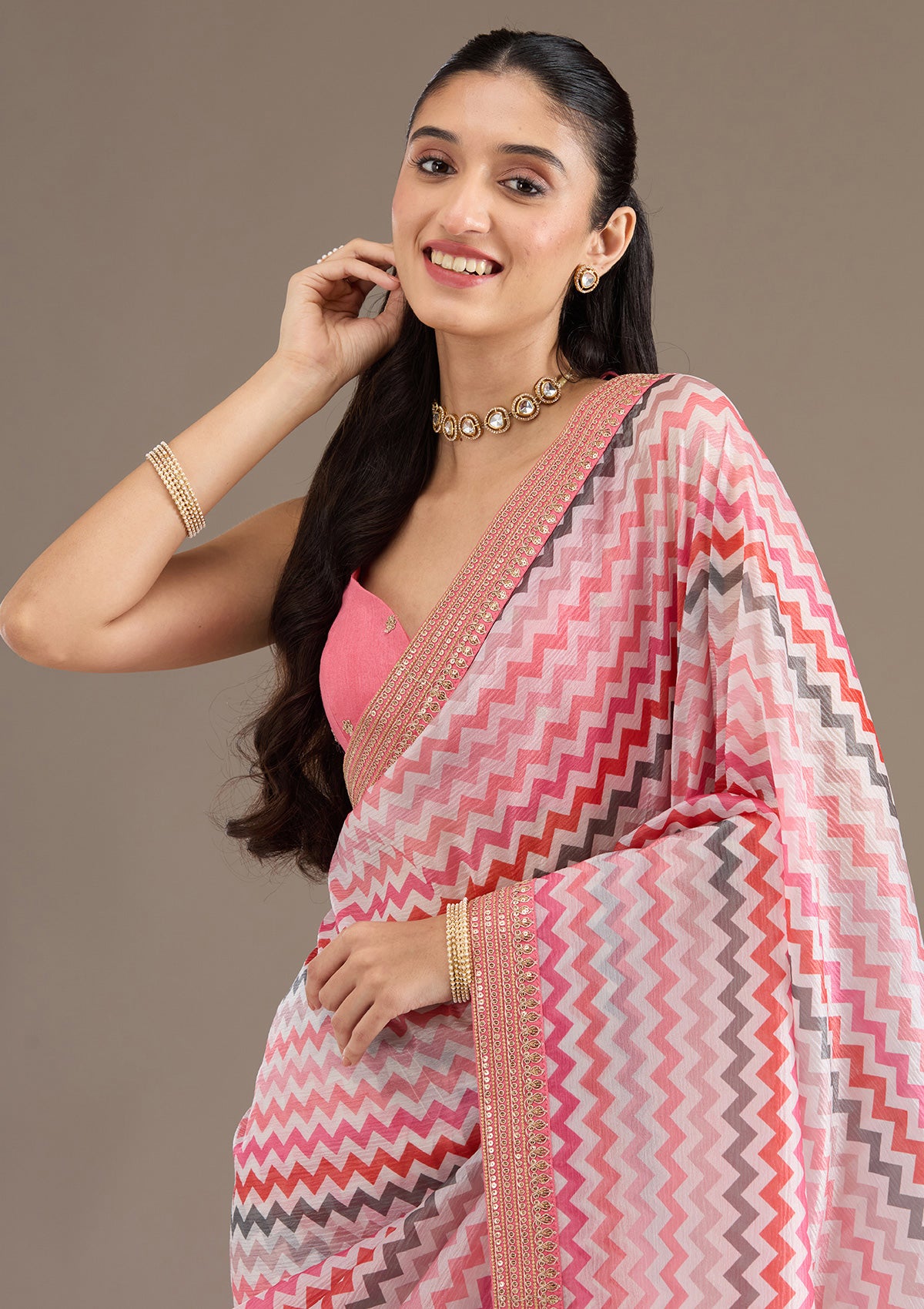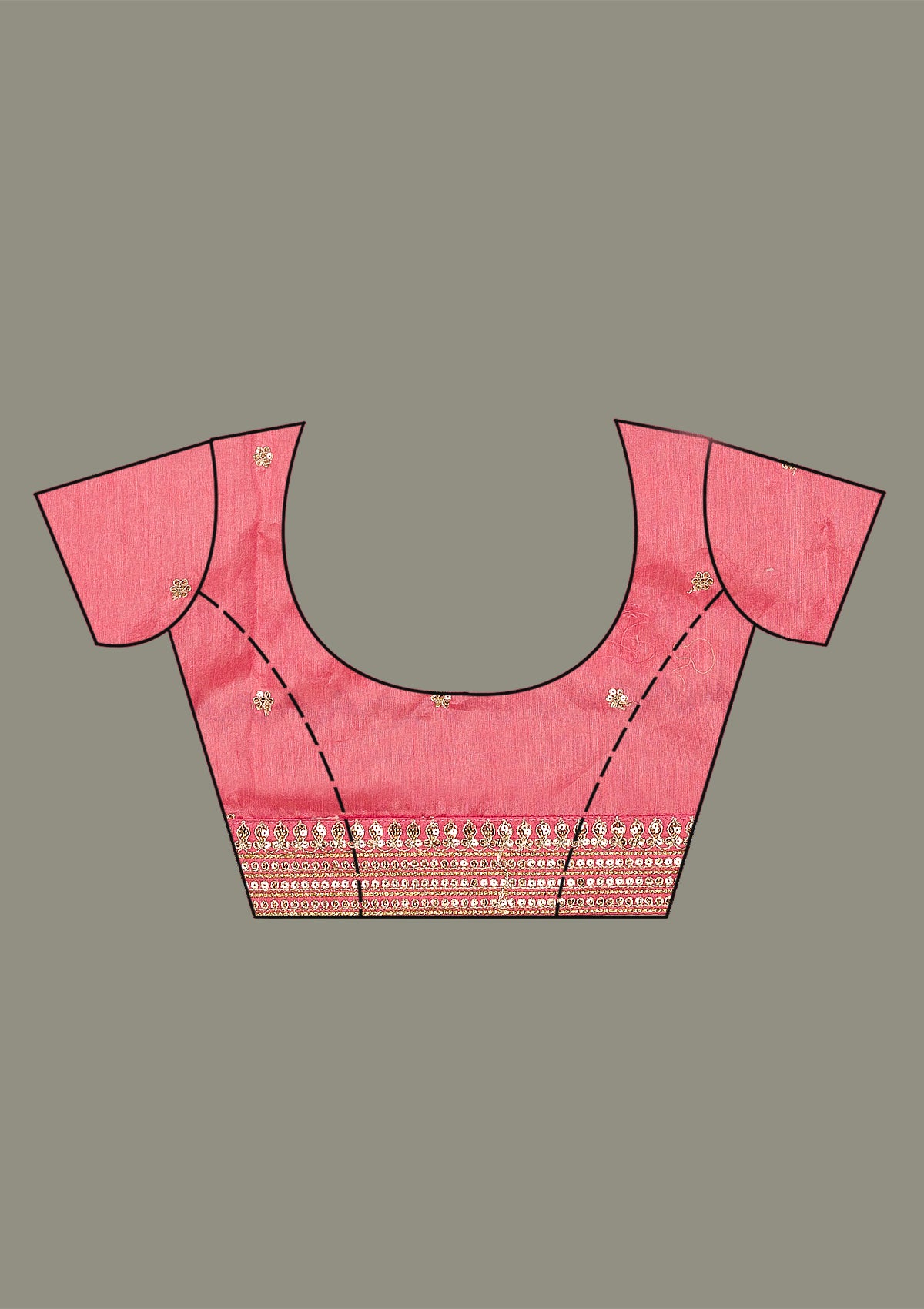 Rani Pink Saree in Tissue fabric. The Saree is elevated with Sequins embroidery. It comes with an Unstitched blouse. Comes with the Koskii promise of premium quality.