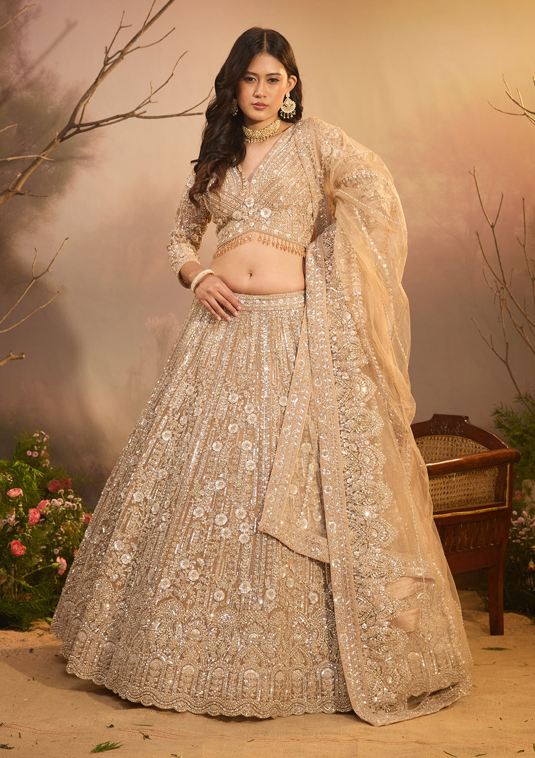| Cream Sequins Net Readymade Lehenga | ₹ 56,990 | |