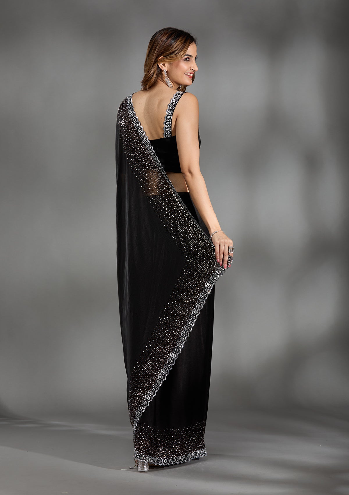 Black Stonework Chiffon Saree