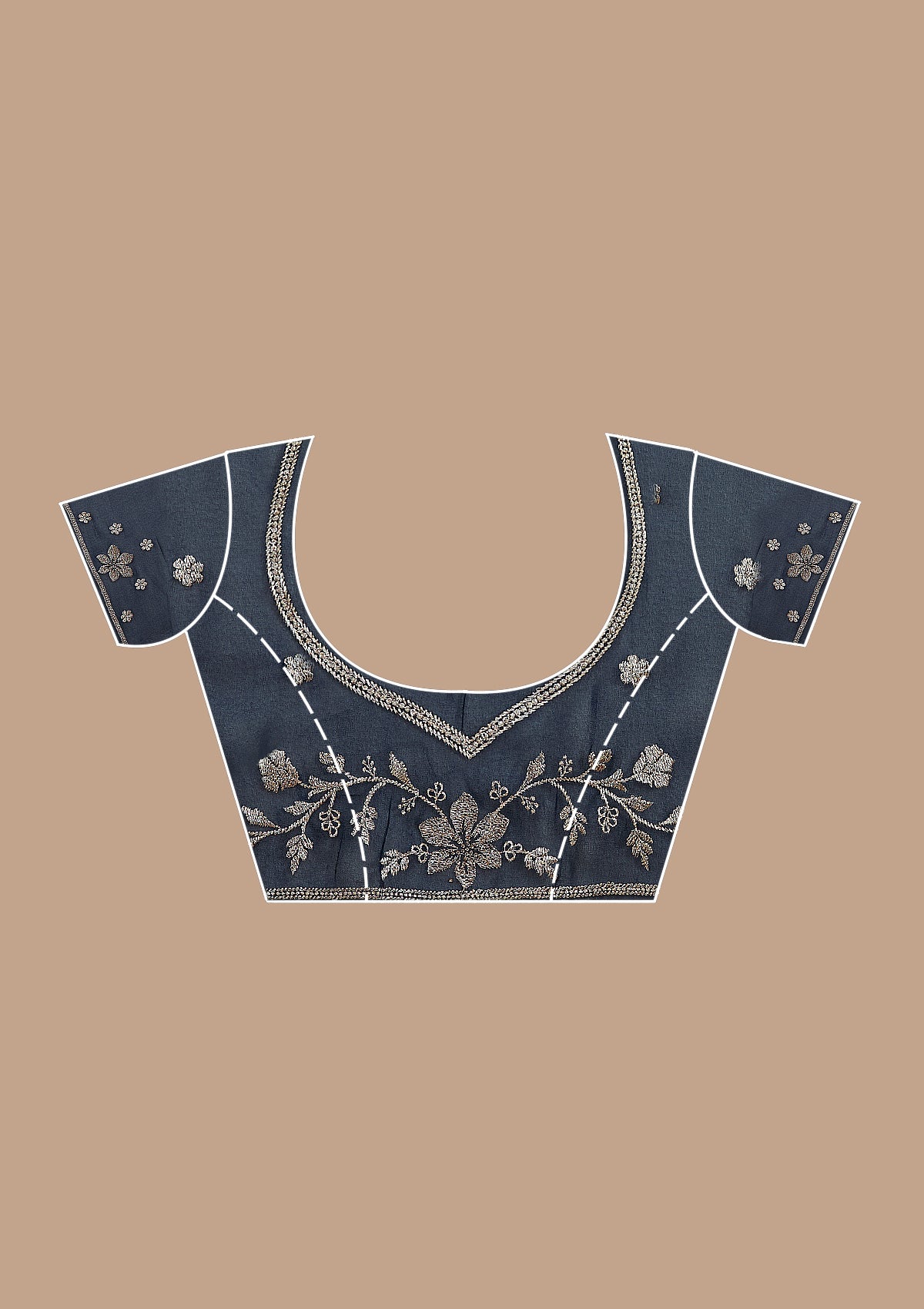 Navy Blue Saree in Georgette fabric. The Saree is elevated with Zariwork (Gold) embroidery. It comes with an Unstitched blouse. Comes with the Koskii promise of premium quality.
