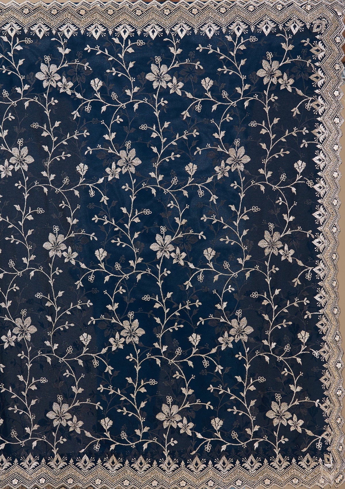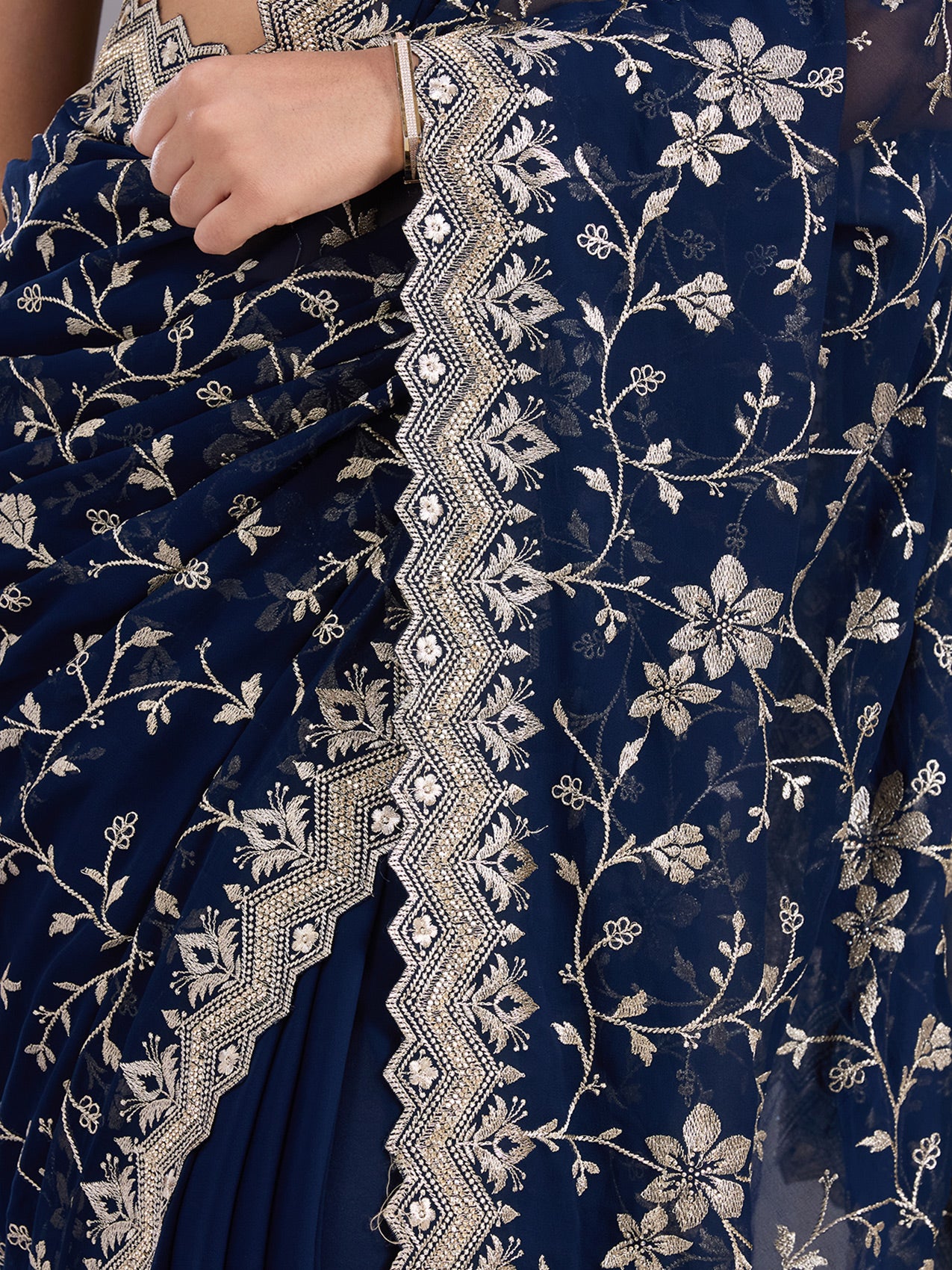 Navy Blue Zariwork (Gold) Georgette Saree