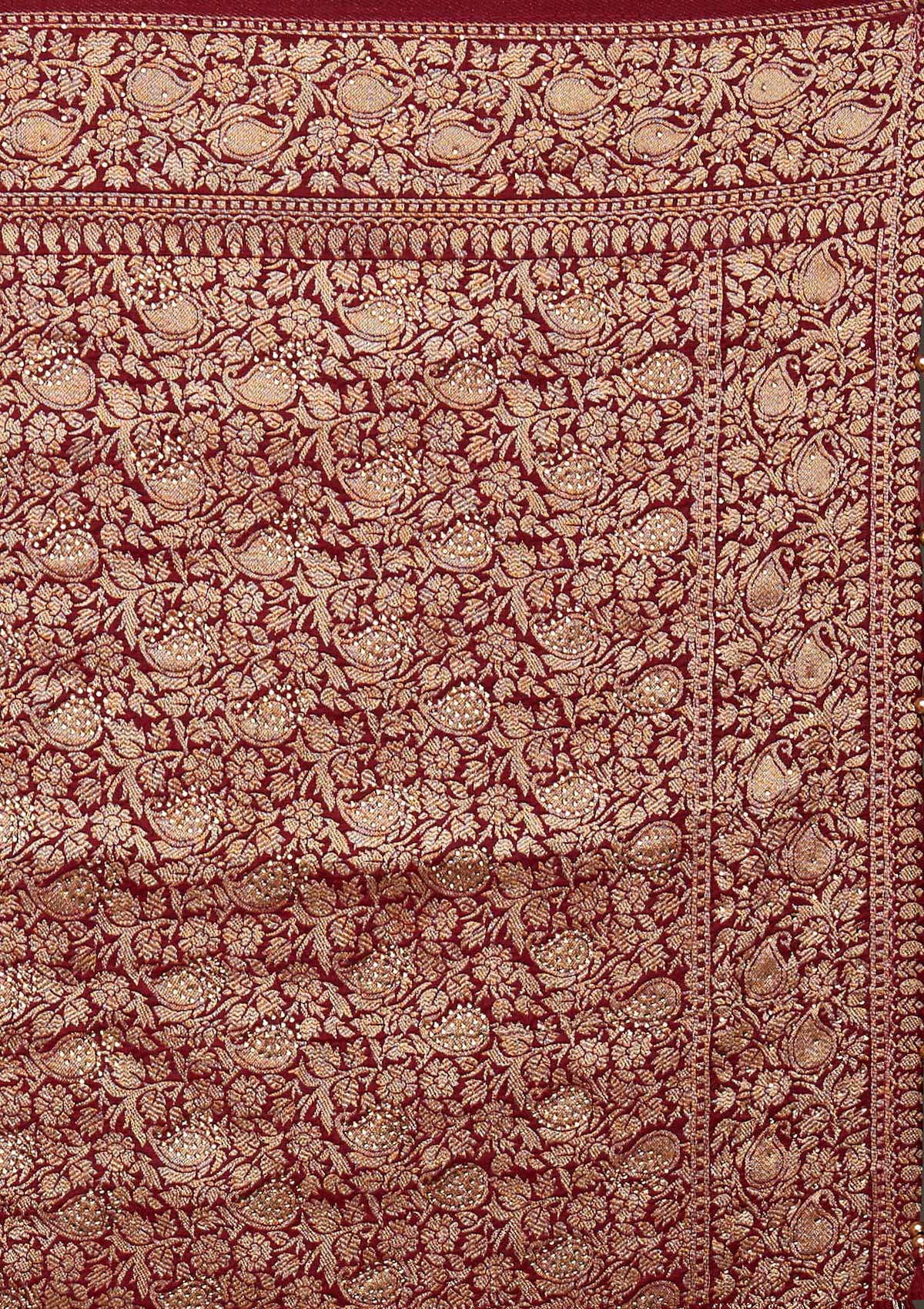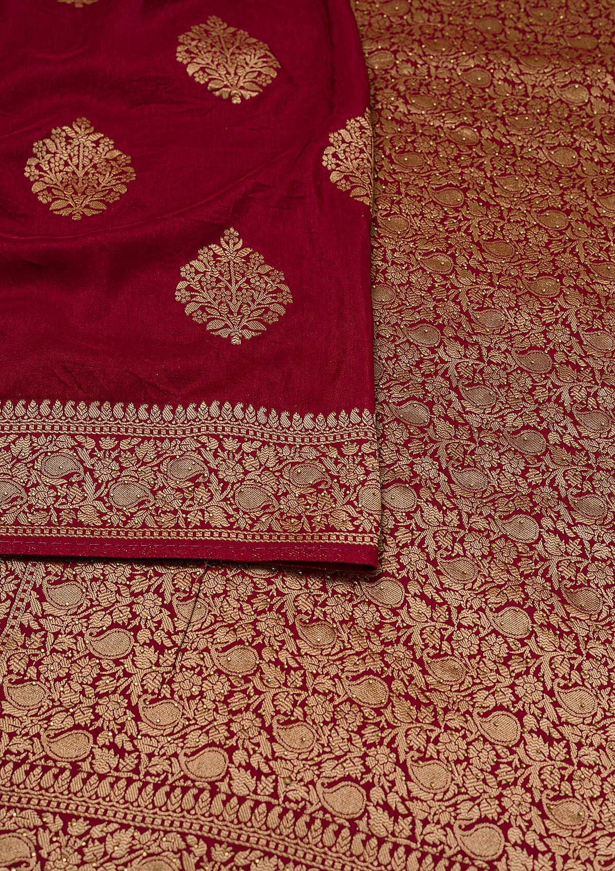 Drape yourself in the enchanting allure of Koskii's maroon silk saree, where tradition meets a playful spirit! Every swish of this lush art silk fabric showcases magnificent antique zariwork, sparkling with a timeless charm. Perfect for those who love to express their vibrant personality through their wardrobe, this saree promises to turn heads and capture hearts at any gathering.