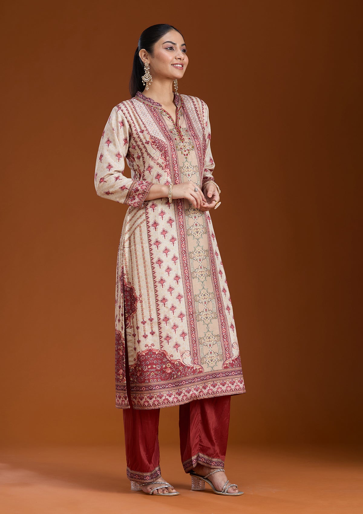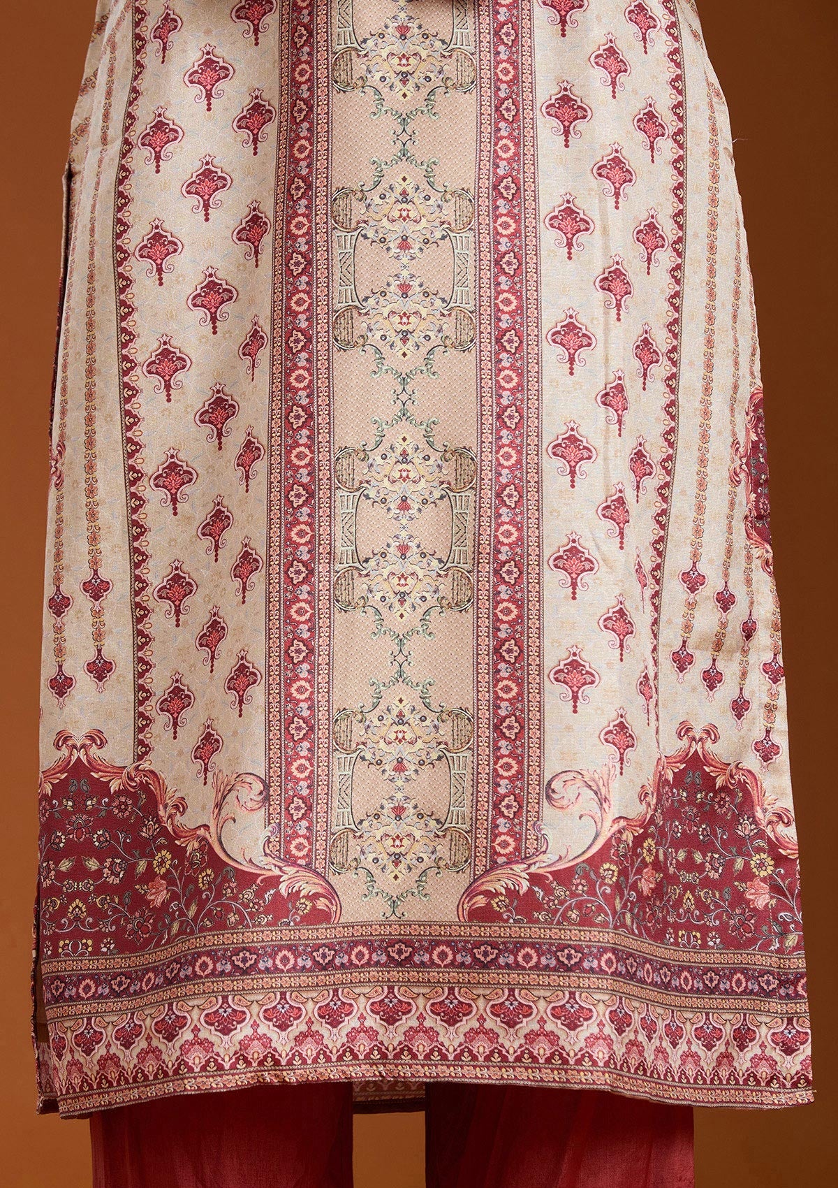 Beige Printed Crepe Readymade Salwar Suit