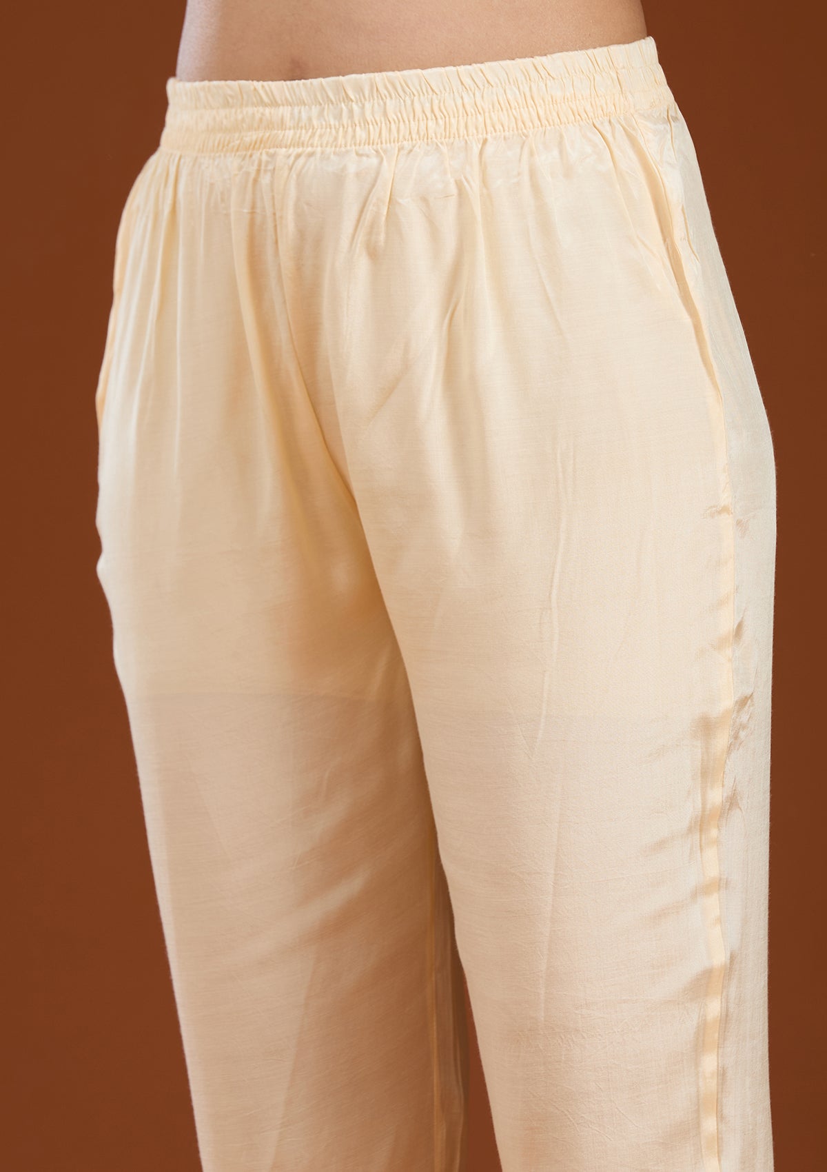 Beige Sequins Soft Raw Silk Readymade Salwar Suit