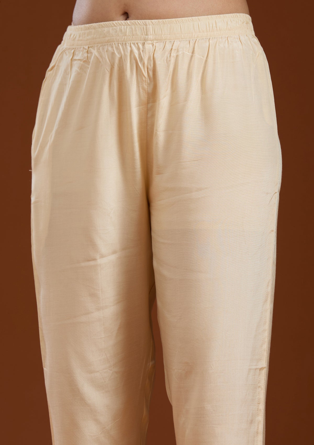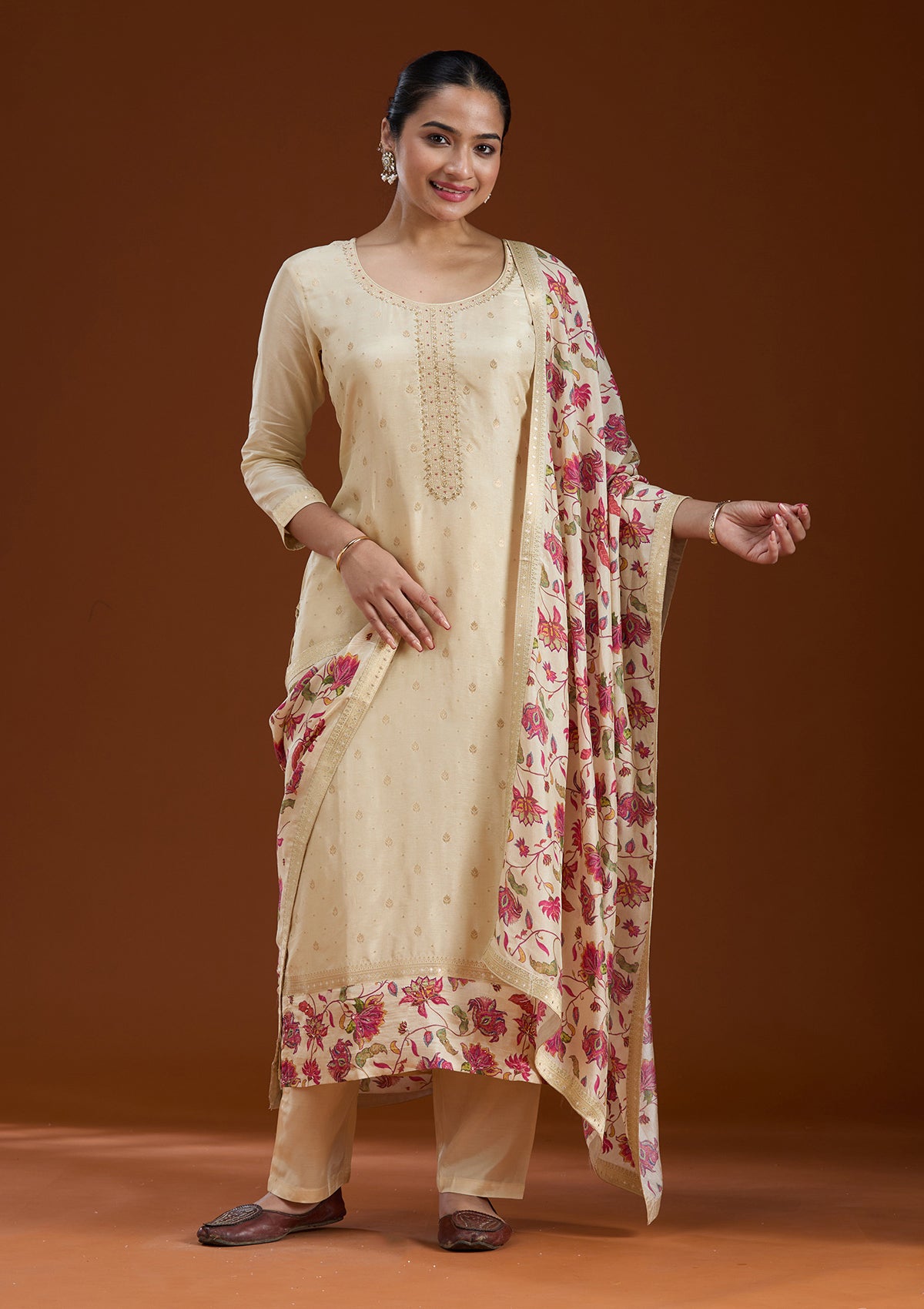 Beige Salwar Suit in Soft Raw Silk fabric The Salwar Suit is embellished with Sequins embroidery Accompanied with a bottom and dupatta Comes with the Koskii promise of premium quality.