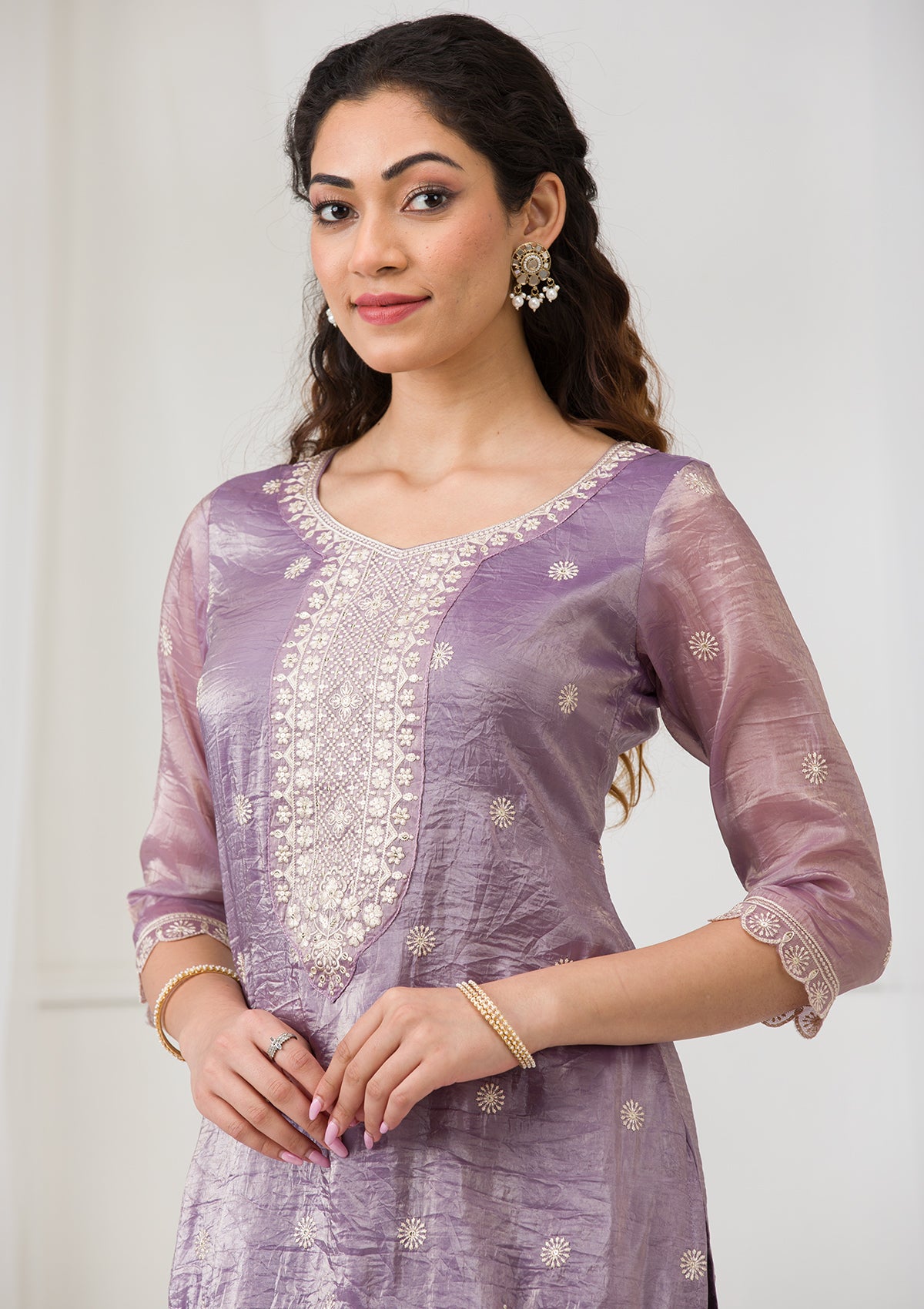 Unleash your vibrant spirit with Koskii's Purple Salwar Suit, tailored to perfection in sumptuous organza. This readymade ensemble sparkles with exquisite gold zari embroidery, offering a playful yet polished centerpiece for any gathering. Dive into a world of elegance and comfort where every detail, from the airy fabric to the shimmering adornments, is a celebration of spirited sophistication!