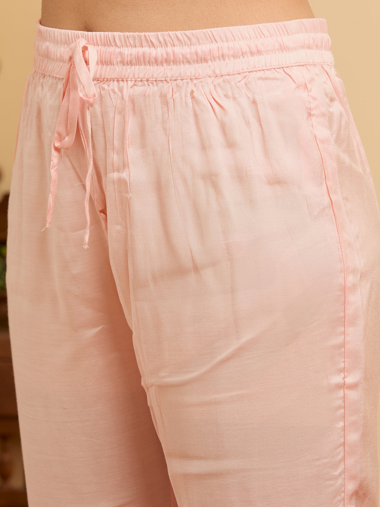 Peach Salwar Suit in Chanderi fabric. The Salwar Suit is embellished with Threadwork embroidery. Accompanied with a bottom and dupatta. Comes with the Koskii promise of premium quality.