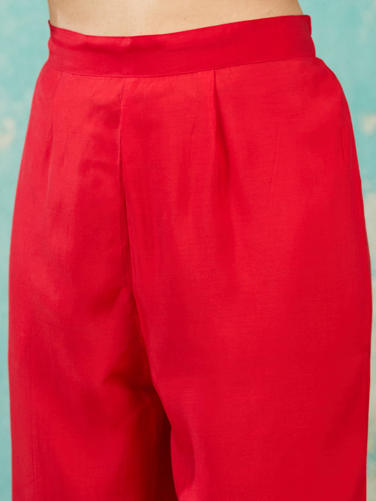 Red Salwar Suit in Chanderi fabric. The Salwar Suit is embellished with Sequins embroidery. Accompanied with a bottom and dupatta. Comes with the Koskii promise of premium quality.