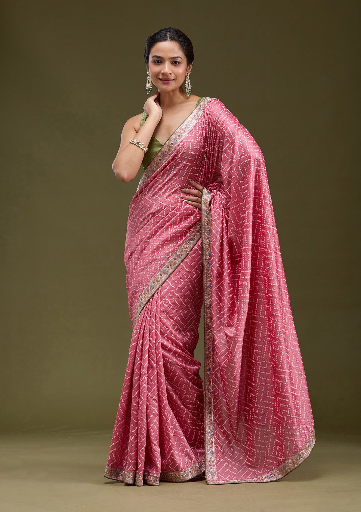 Baby Pink Saree in Soft Raw Silk fabric. The Saree is elevated with Printed embroidery. It comes with an Unstitched blouse. Comes with the Koskii promise of premium quality.