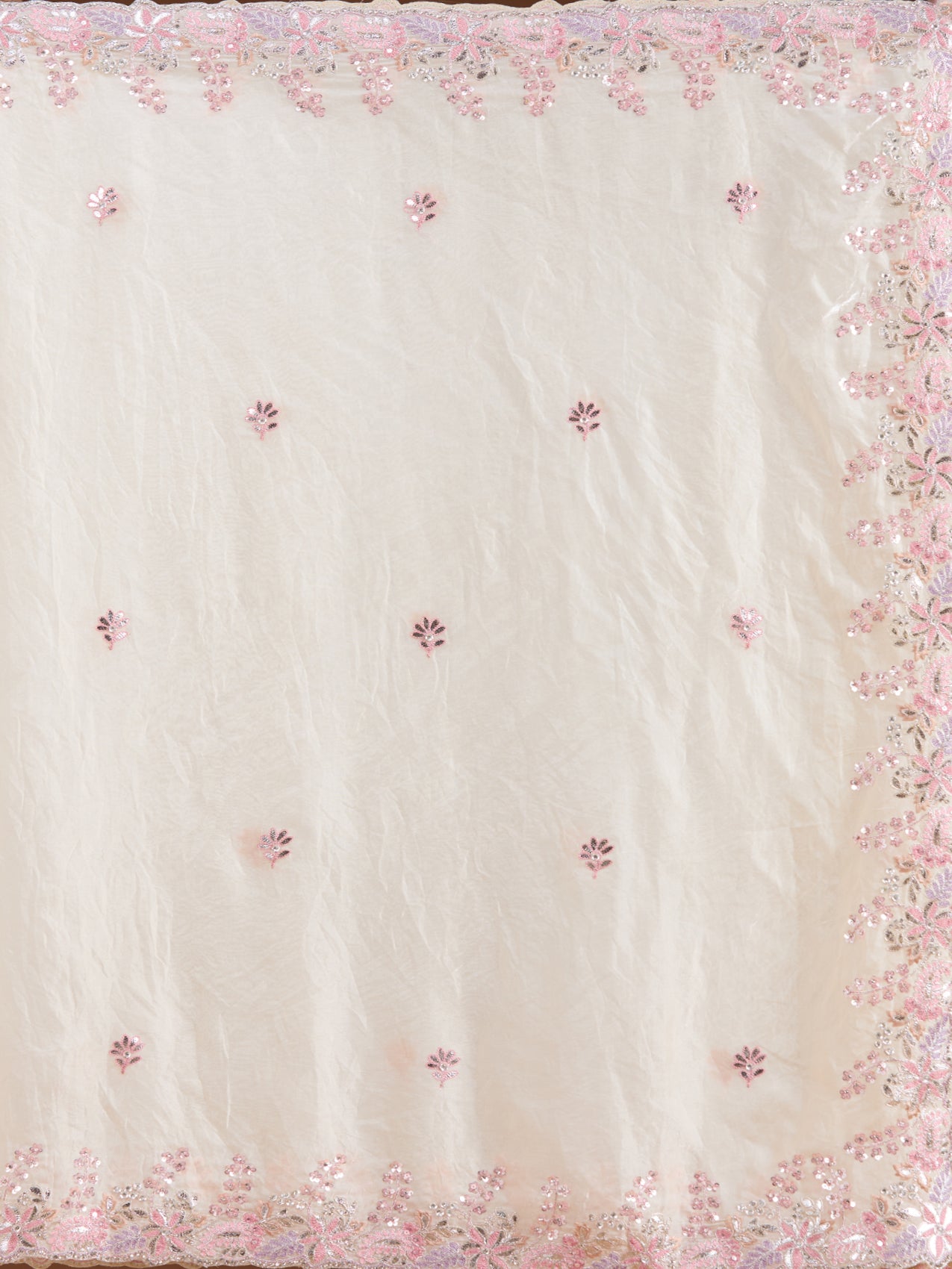 Cream Gotapatti Satin Saree
