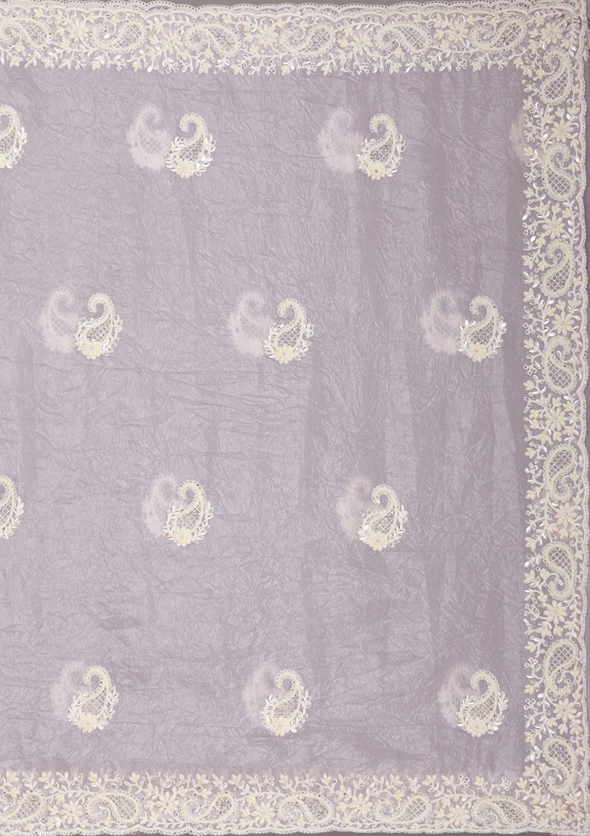 Lavender Pearlwork Tissue Saree